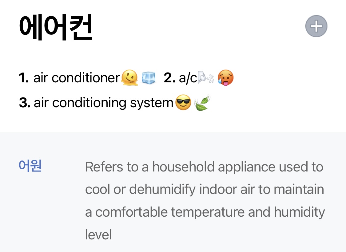 한국어로 말하는 “에어컨”을 그대로 번역하면 air conditioner가 됩니다.