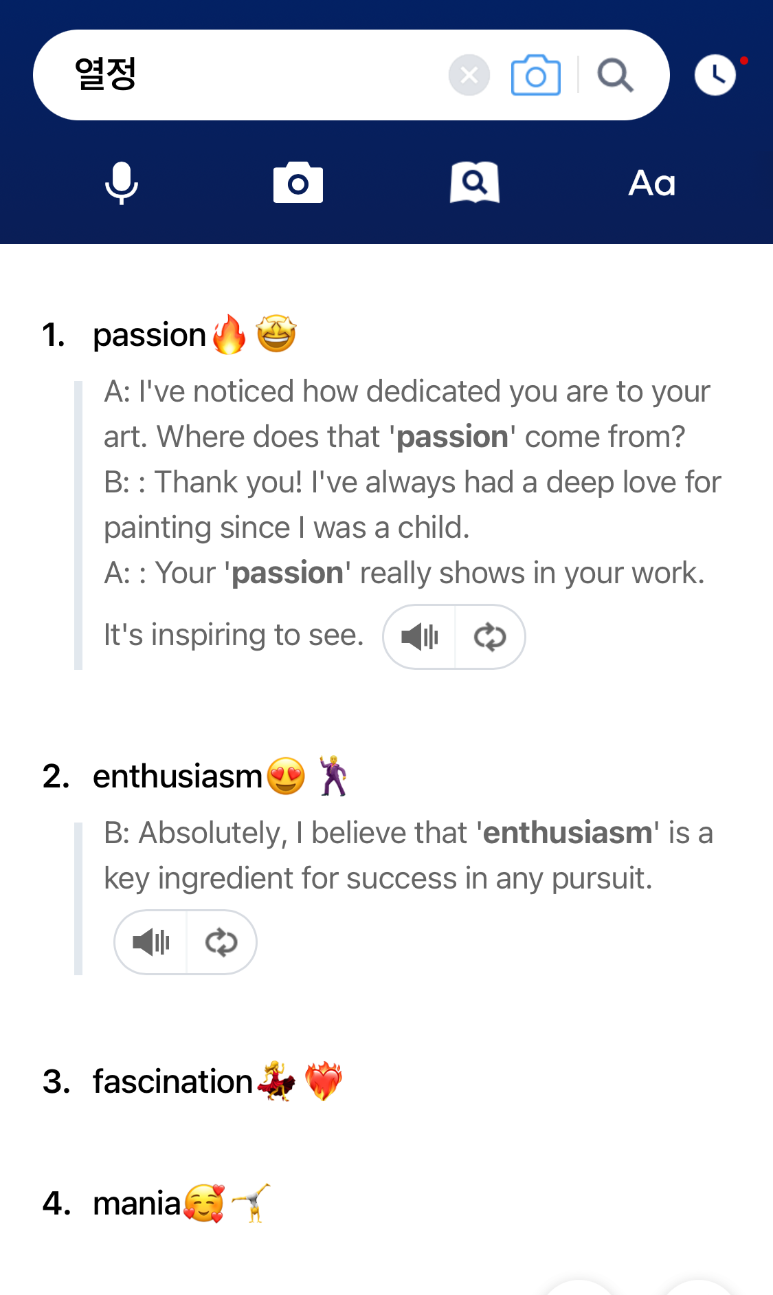 하지만 영어에는 이 외에도 enthusiasm, fascination, mania 등 ‘열정’을 뜻하는 다양한 단어들이 있답니다.