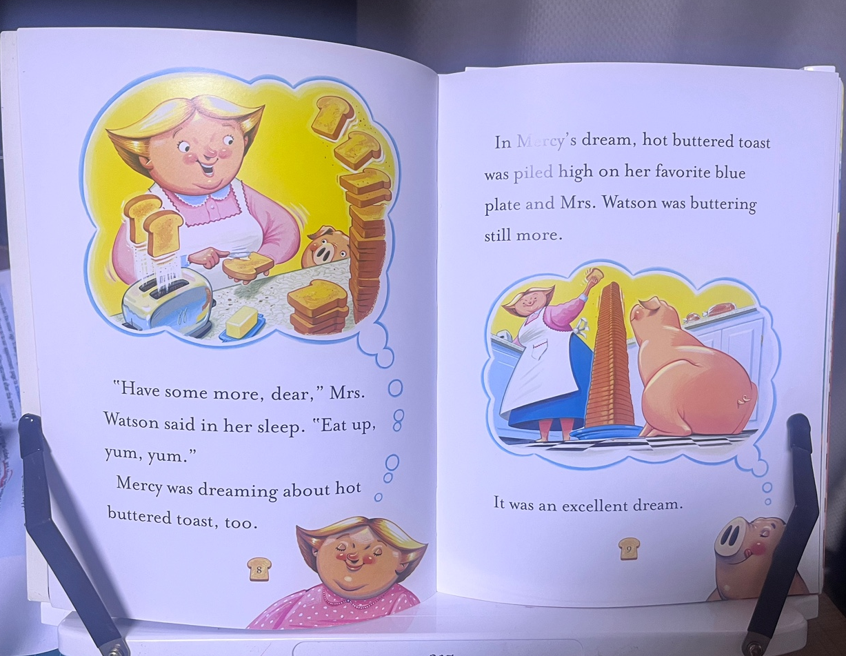 이 책은 버터가 듬뿍 발린 토스트를 사랑하는 돼지, 머시 왓슨과 그녀의 엉뚱한 모험을 그린 이야기예요.