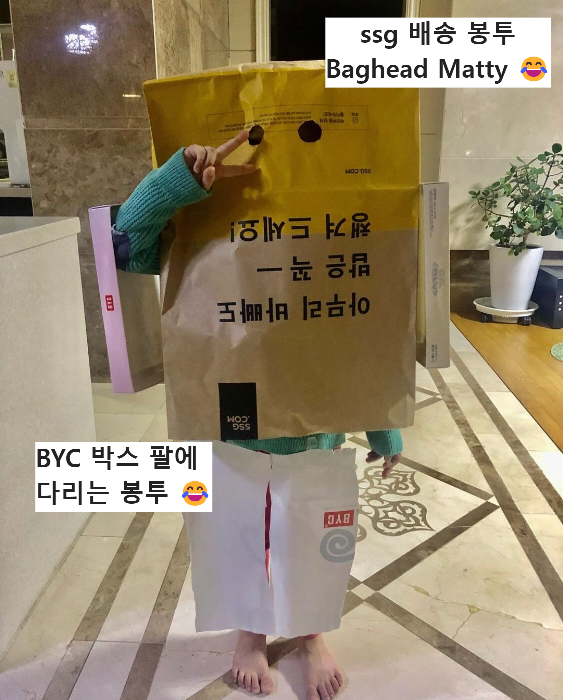 저희집 아들 매티도 5살 때 이렇게 혼자 종이봉투 가져다
