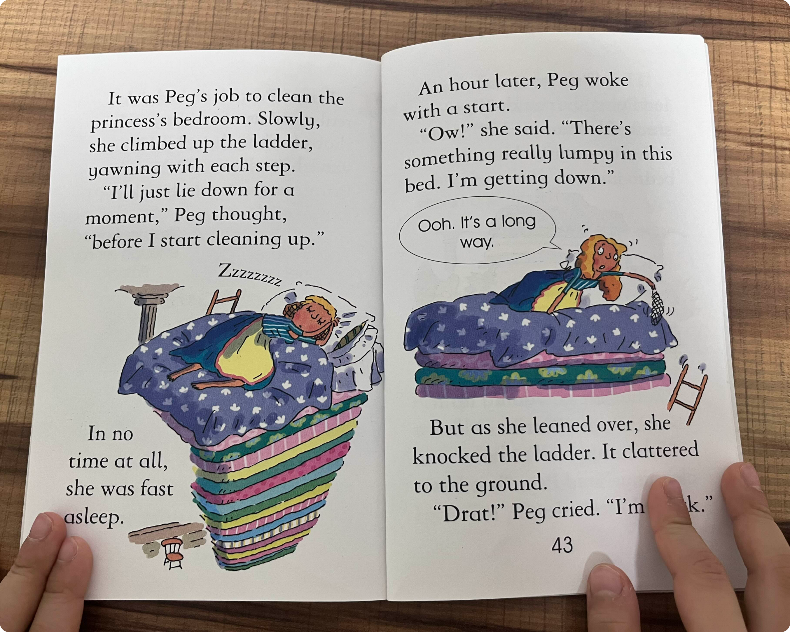 오늘은 재나 바나나와 어스본 영리딩 1단계 책인 "The Princess and the Pea"(공주와 완두콩)을 즐겁게 읽었었어요!