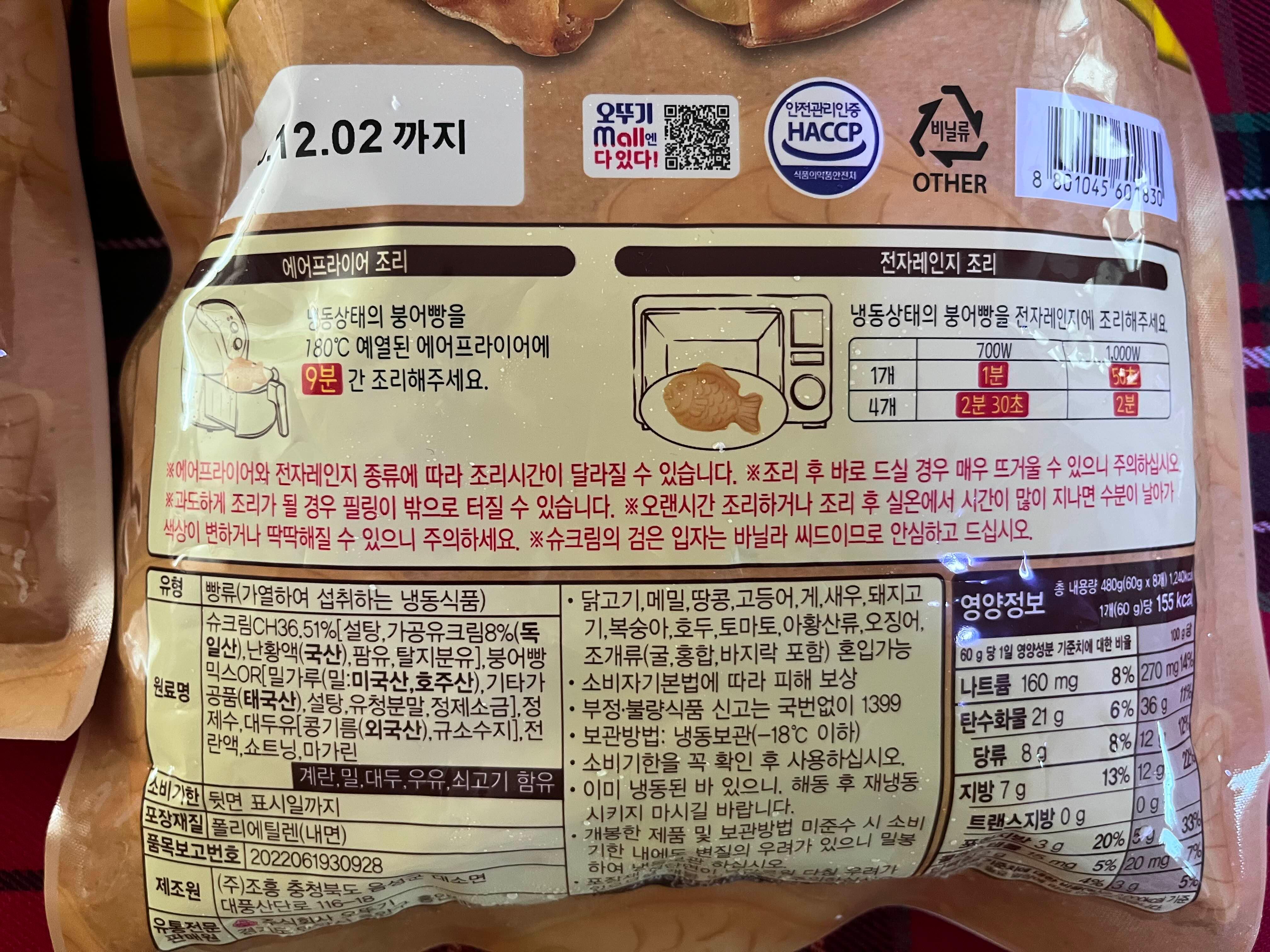 - 차가운 조리법: 에어프라이어 (4분)/ 전자레인지 (20초)