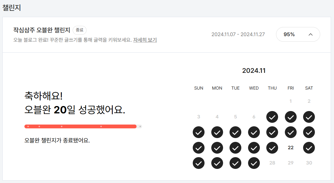 작심삼주 오블완 챌린지 (11월 7일~ 27일)