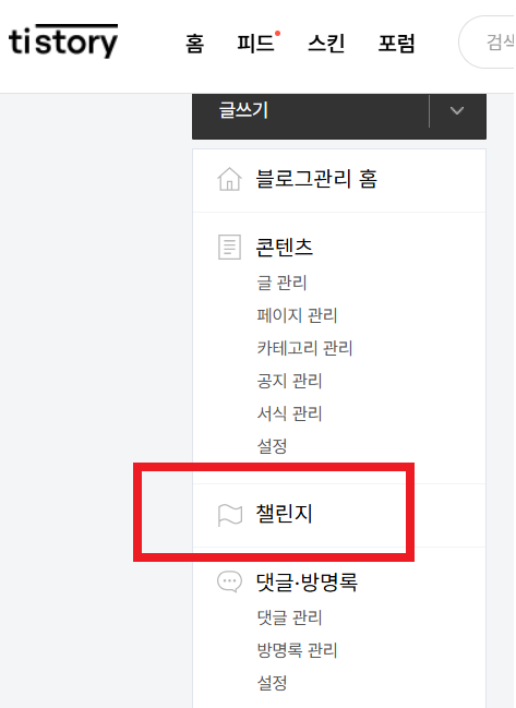 PC화면에서는 왼쪽 메뉴바에 🏳️챌린지 카테고리가 생긴 게 보여요.