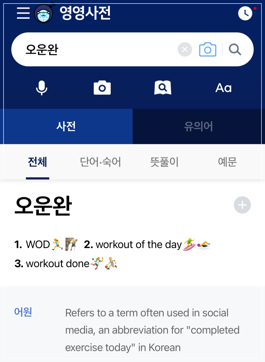 운동이 끝난 후 소셜 미디어에 올리는 '오운완'이라는 표현! 이제 영어로도 표현해 보세요. ‘오운완’은 ‘오늘 운동 완료’의 줄임말인데, 영어로는 어떻게 말할 수 있을까요?