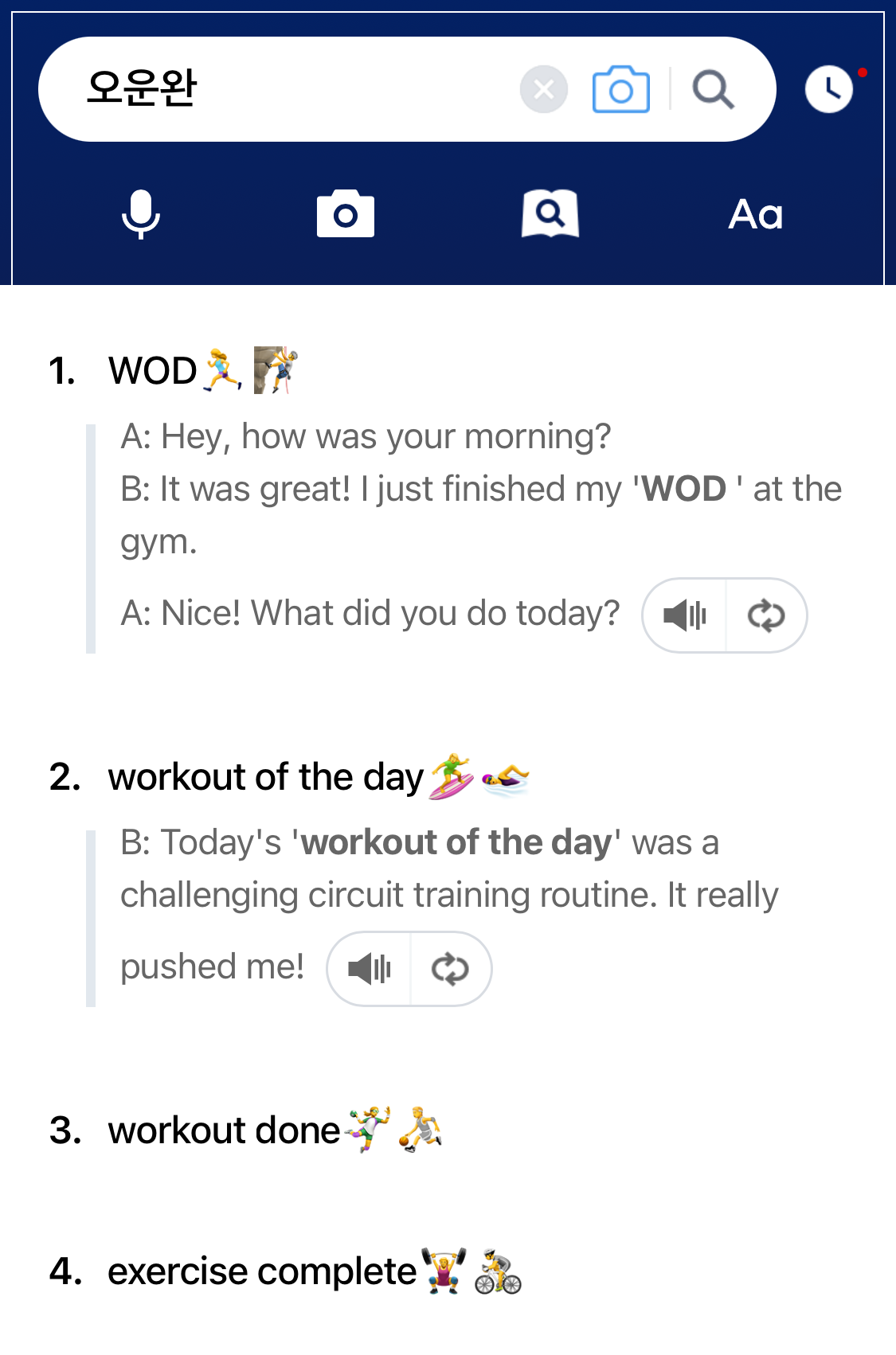 운동이 끝난 후 소셜 미디어에 올리는 '오운완'이라는 표현! 이제 영어로도 표현해 보세요. ‘오운완’은 ‘오늘 운동 완료’의 줄임말인데, 영어로는 어떻게 말할 수 있을까요?