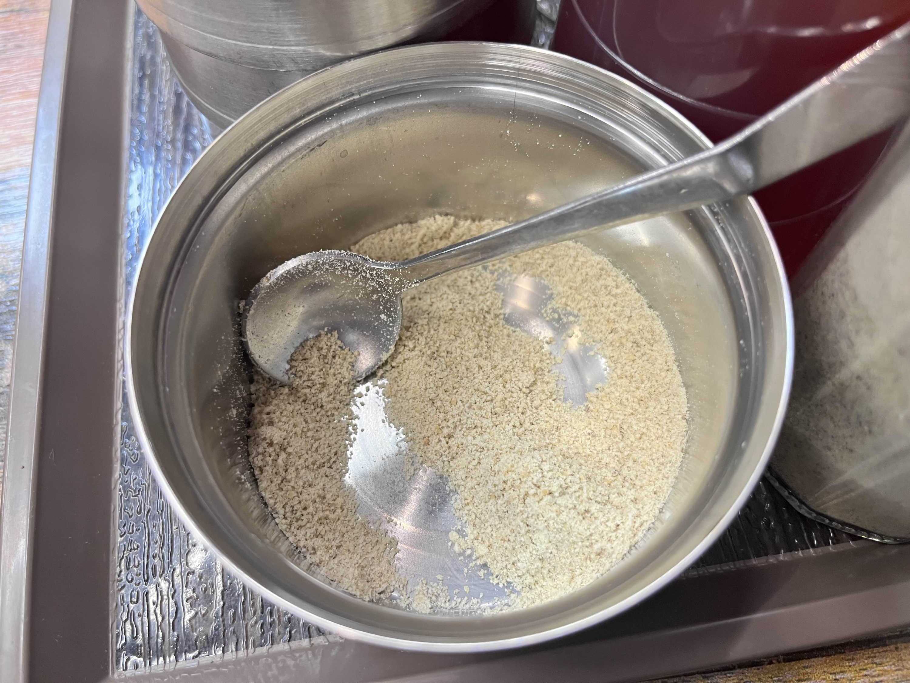 테이블 위에 양념이 있었는데 정체를 모르겠어요 ㅎㅎ