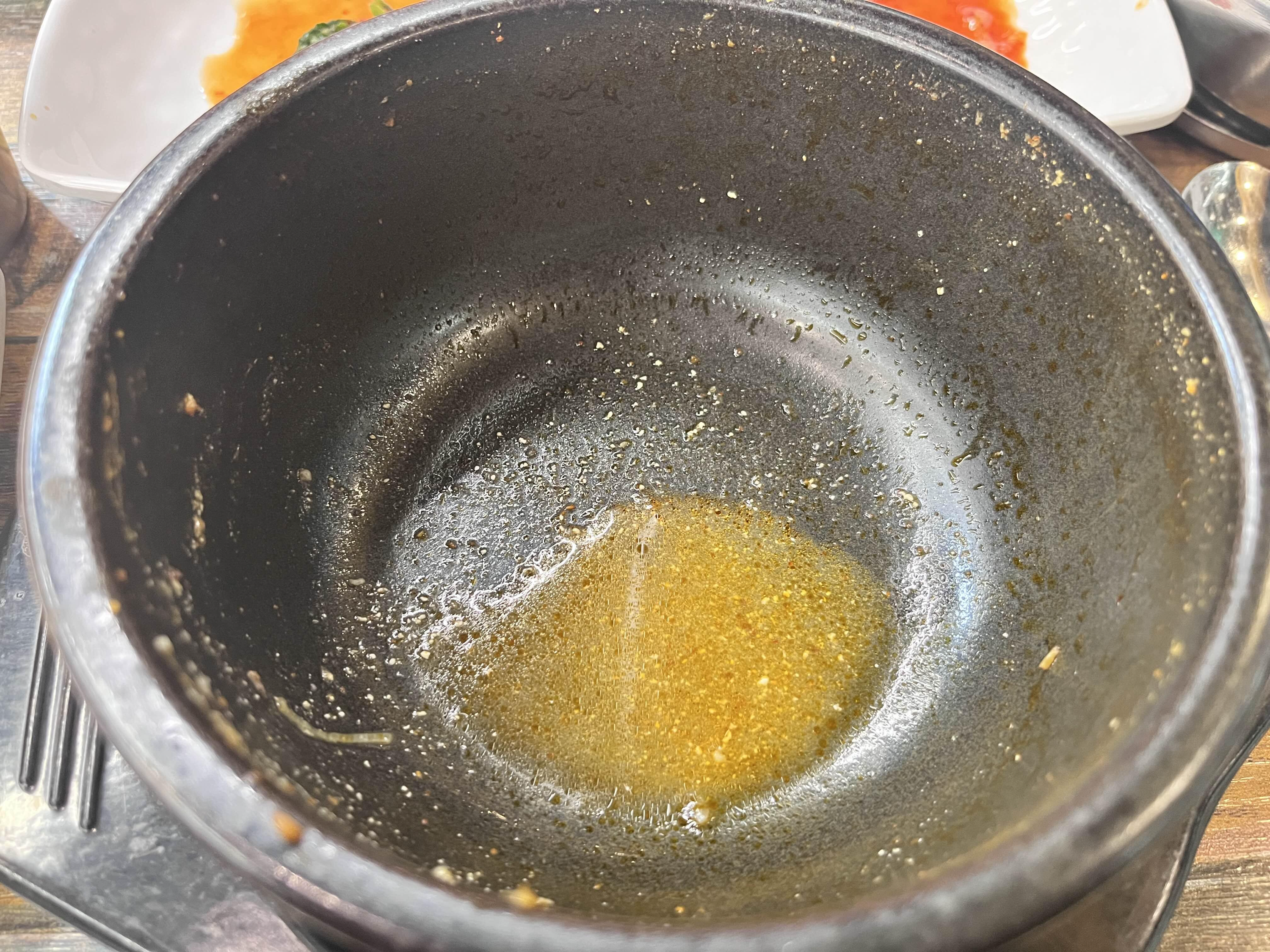 옆에는 맑은 고추기름도 놓여 있었어요.