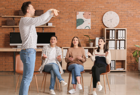 6. 제스처 게임 (Charades): 제스처 게임은 단어를 제스처로 표현하고, 다른 플레이어들이 맞추는 게임입니다. 이 게임을 통해 어휘력을 향상시키고, 몸짓 표현 능력을 키울 수 있습니다. 또한, 창의력을 발휘하고, 팀워크를 강화하는 데에도 도움이 됩니다.