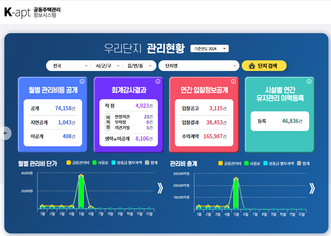 내가 사는 지역이 지역난방에 해당하는지 궁금하시다면 K-apt 공동주택관리정보시스템 사이트에서 쉽게 확인해 보실 수 있어요!