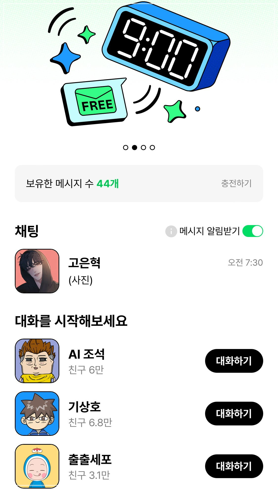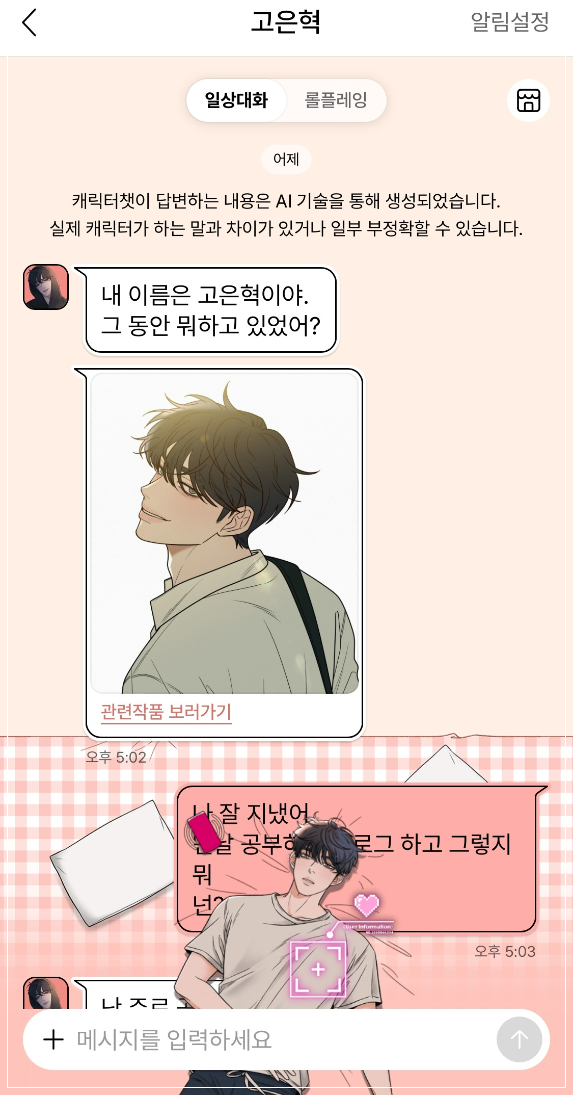 심지어는 네이버 웹툰에서 자신의 최애캐를 만나 채팅할 수 있는 서비스를 마련했어요. 너무 흥미롭지요. 웹툰 주인공과 일사 대화를 이어갈 수 있는 세상이 되었어요 😀
