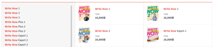 이 교재는 크게 총 3가지로 분류됩니다. 기본 Write Now 교재, Write Now Now Plus, 그리고 Write Now Expert 이렇게 3가지입니다. 이것은 레벨별/단계별 분류라고 생각하시면 됩니다. 그리고 각각의 교재마다 또 다시 난이도를 따라 3단계로 나뉘어 집니다.