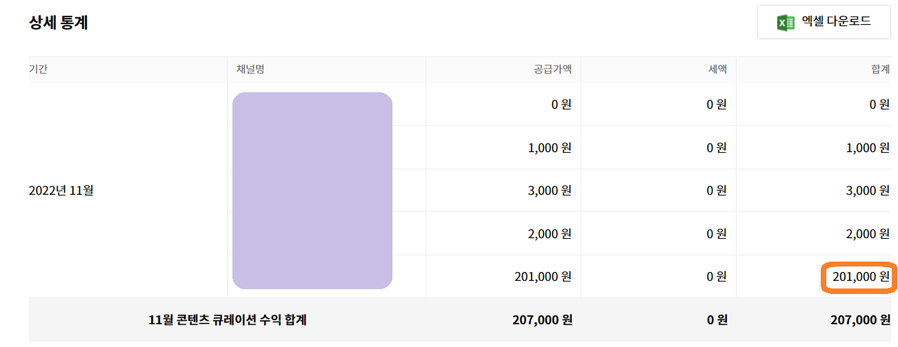 소소하지만.. 이쯤해서 제 수익 인증합니다 (2022.7월~11월) 📢 (오렌지색 박스가 제 최적화 된 채널이예요)