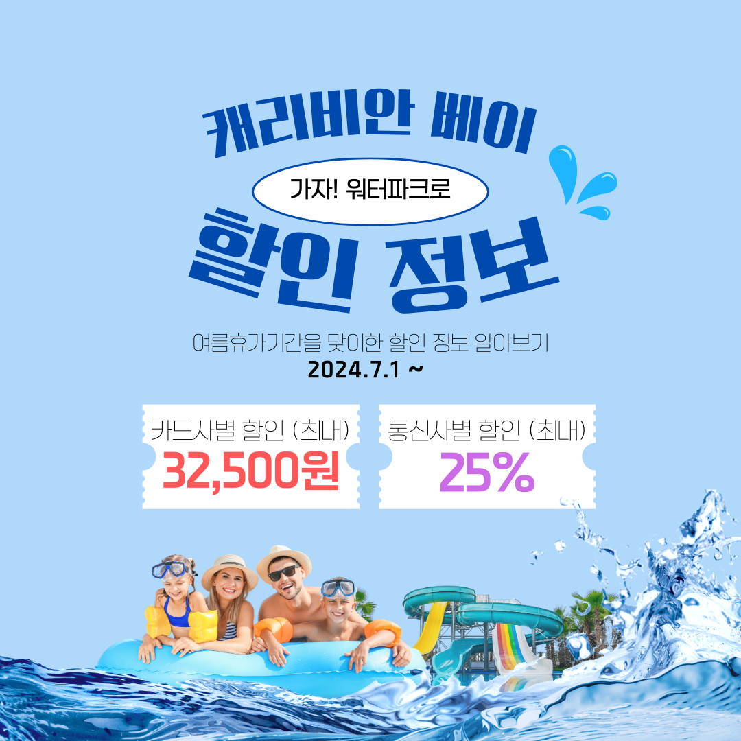 날씨가 여름여름하네요! 물놀이의 계절이 다가왔어요. 워터파트하면 뭐니뭐니해도 캐리비안 베이죠!