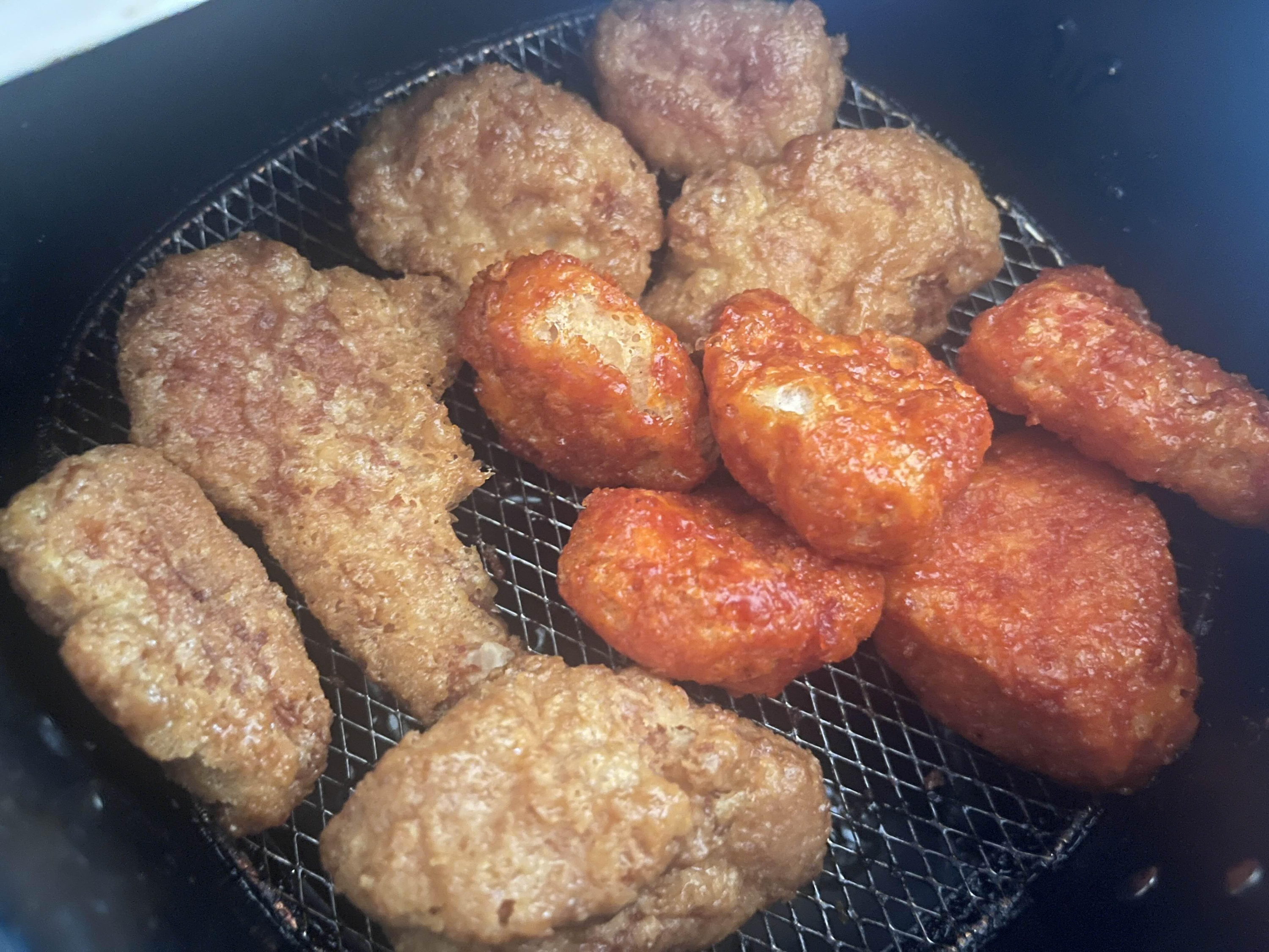 에어프라이어에 140도 세팅해서 9-10분이면 잘 구워져요.