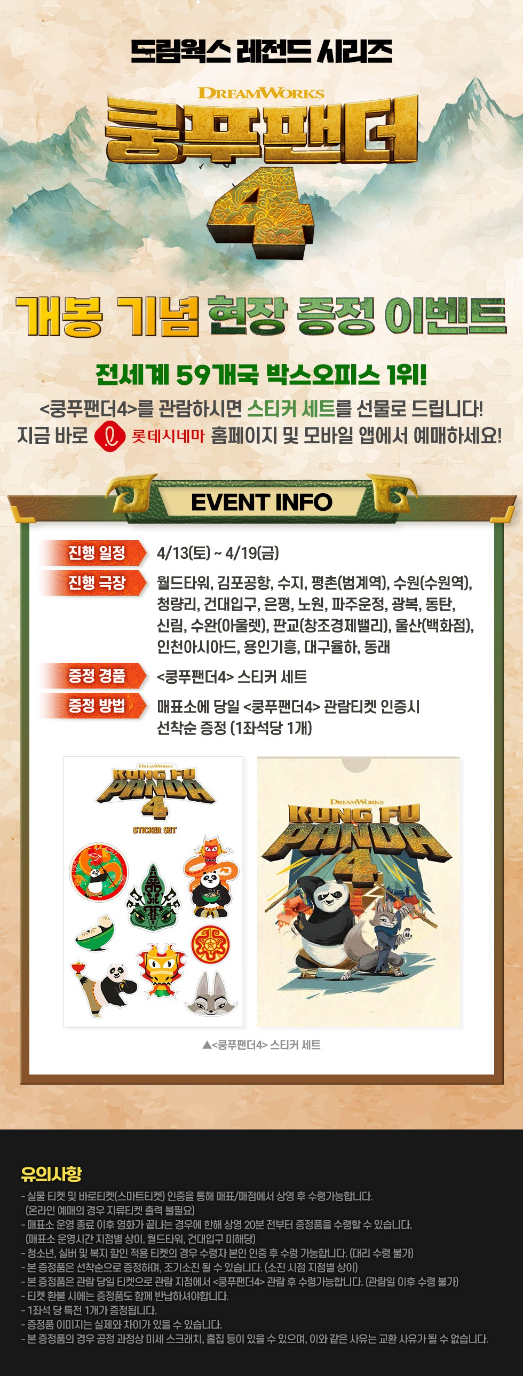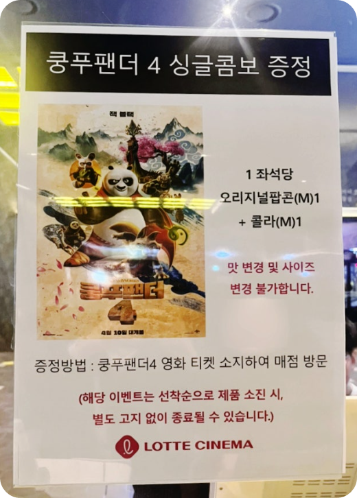 롯데시네마에서 쿵푸팬더4 보실 분들은