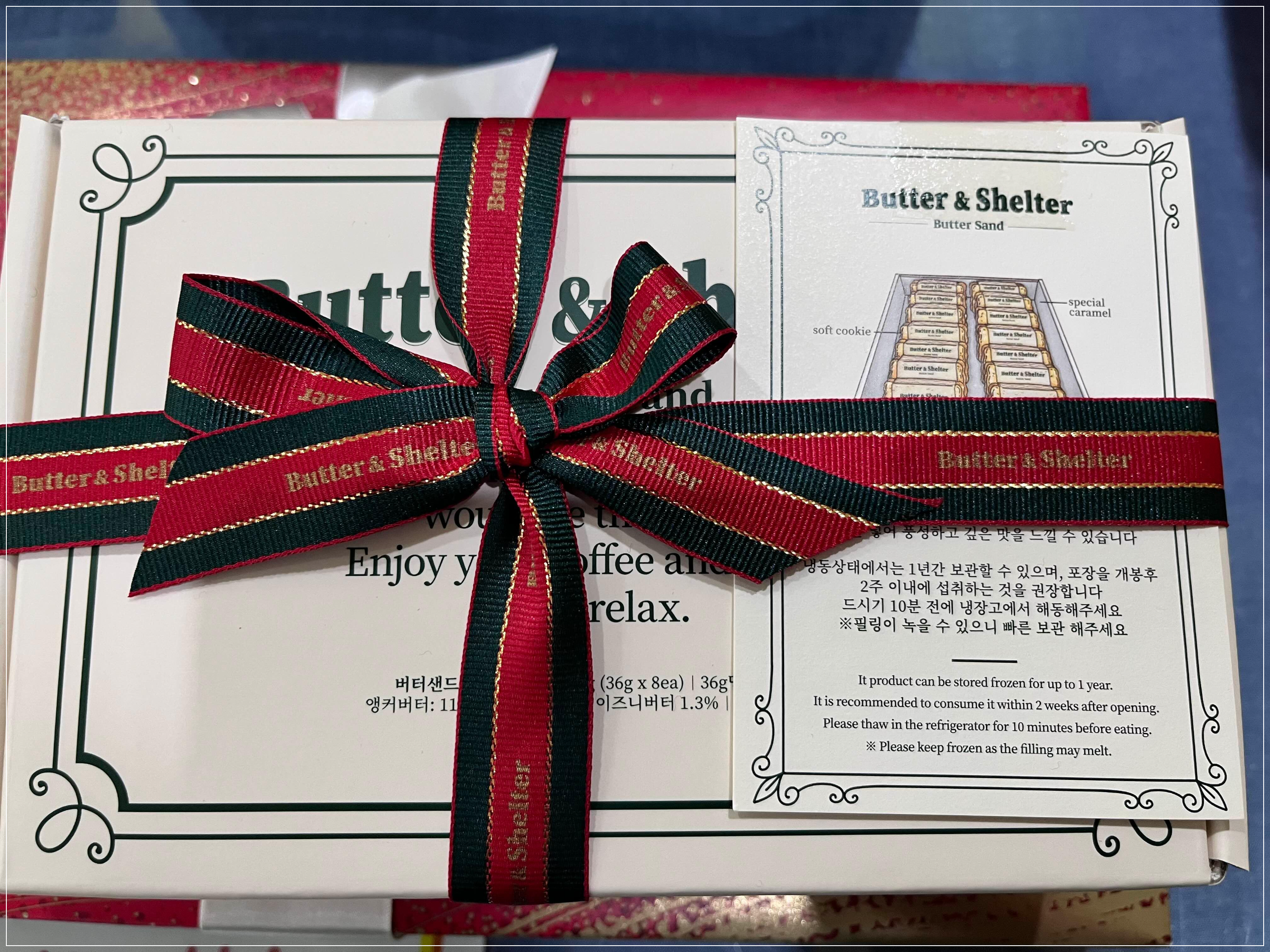 이번 크리스마스에 사온 스타벅스 홀리데이 케이크랑 버터앤쉘터 오리지널 버터샌드 너무 맛있었어요.