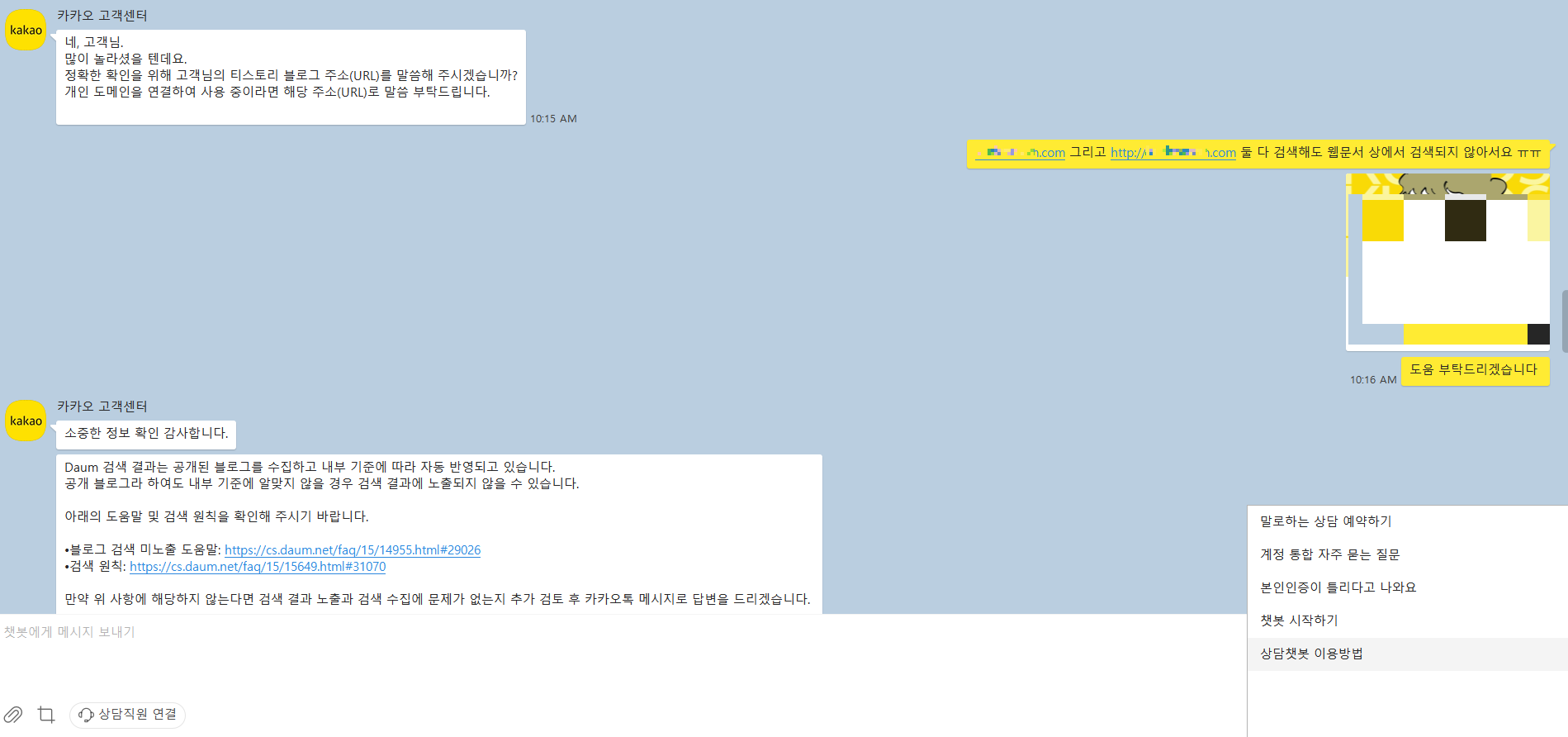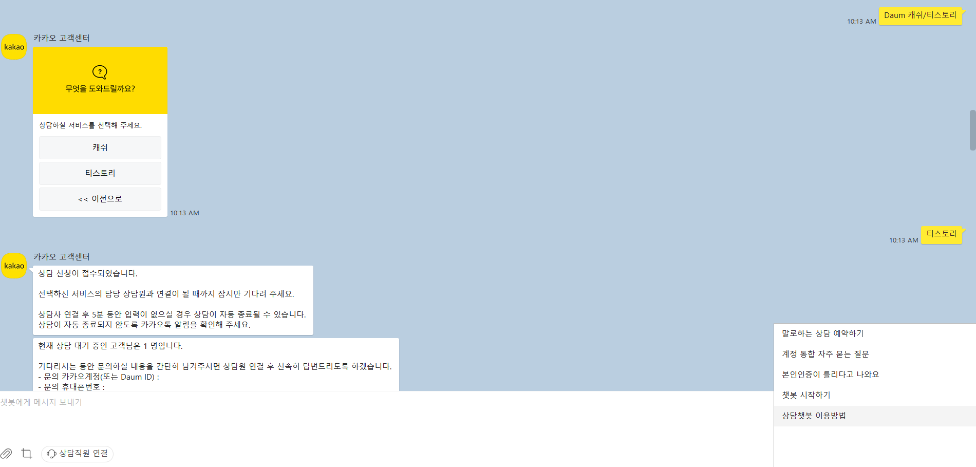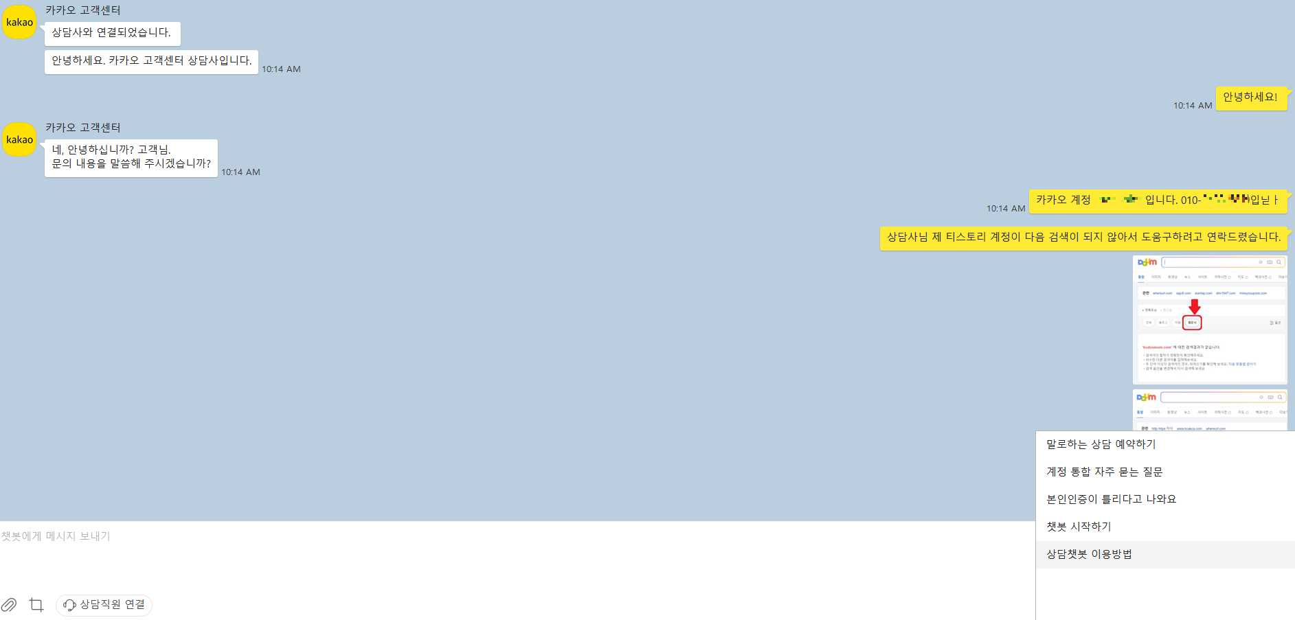 저도 카카오 고객센터 문의를 하기로 결정했어요.