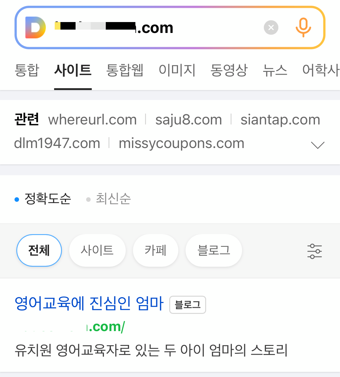 다음 검색에는 제 블로그 사이트가 검색되지 않는데 말이죠 ㅠㅠ