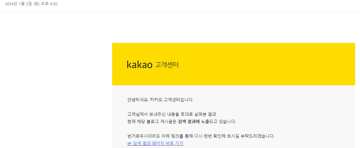 드디어 기다리던 카카오 고객센터의 답변이 왔어요.