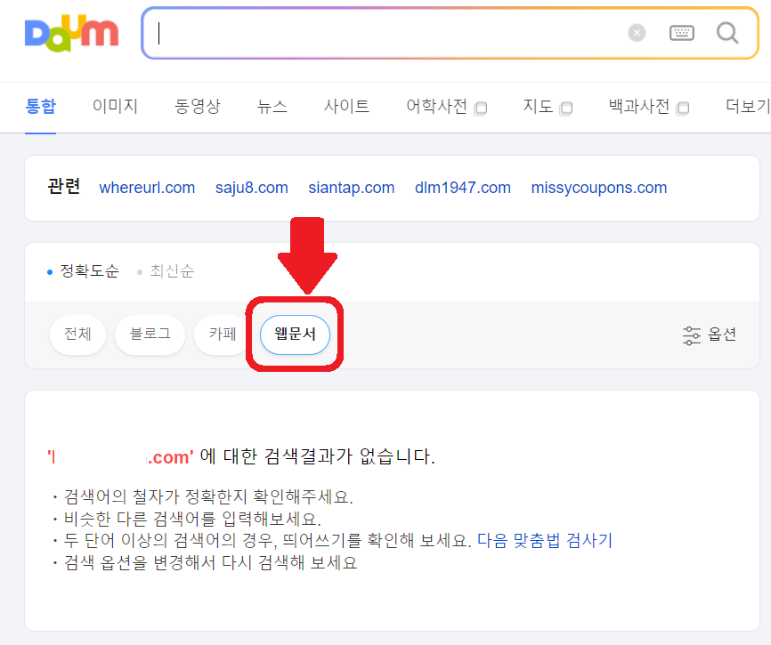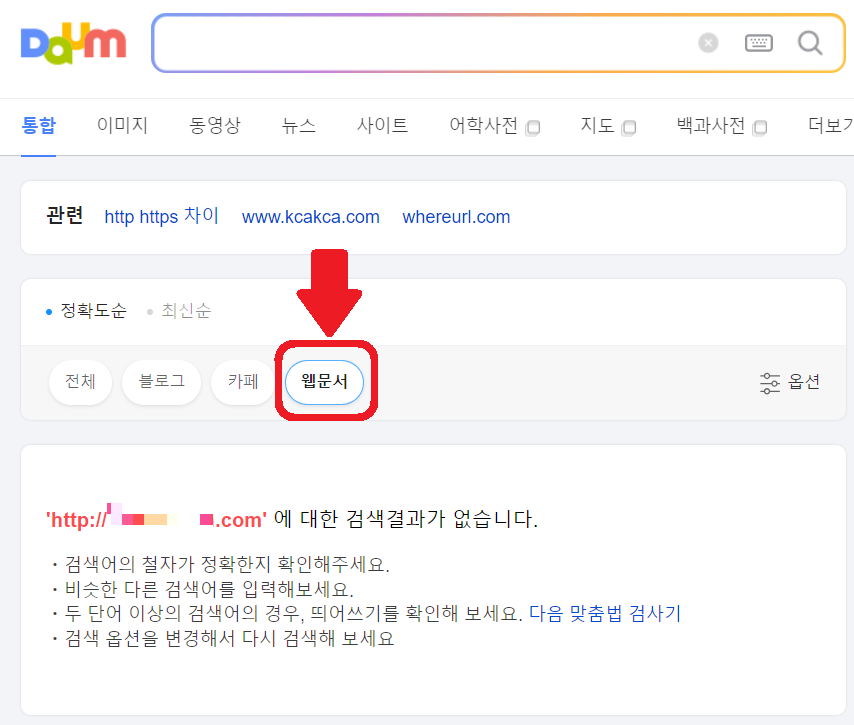 웹문서 탭을 클릭하면 티스토리 블로그가 보여야 하는데