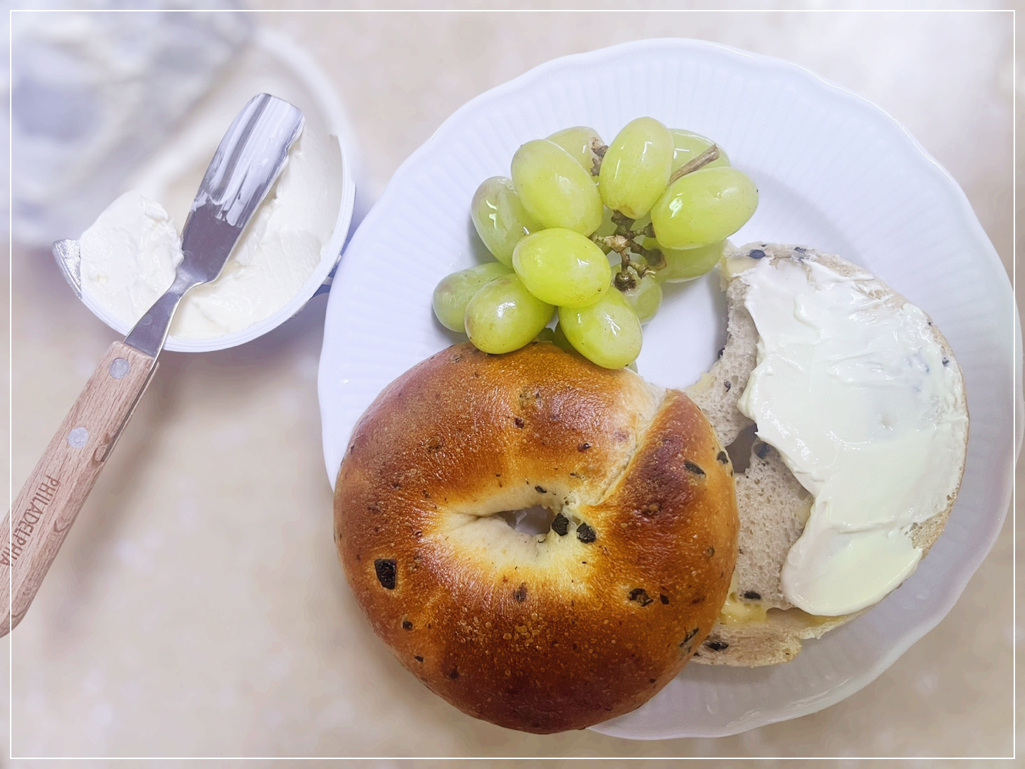베이글은 살짝 토스트하면 더 쫄깃해지고 풍미가 살아나요.