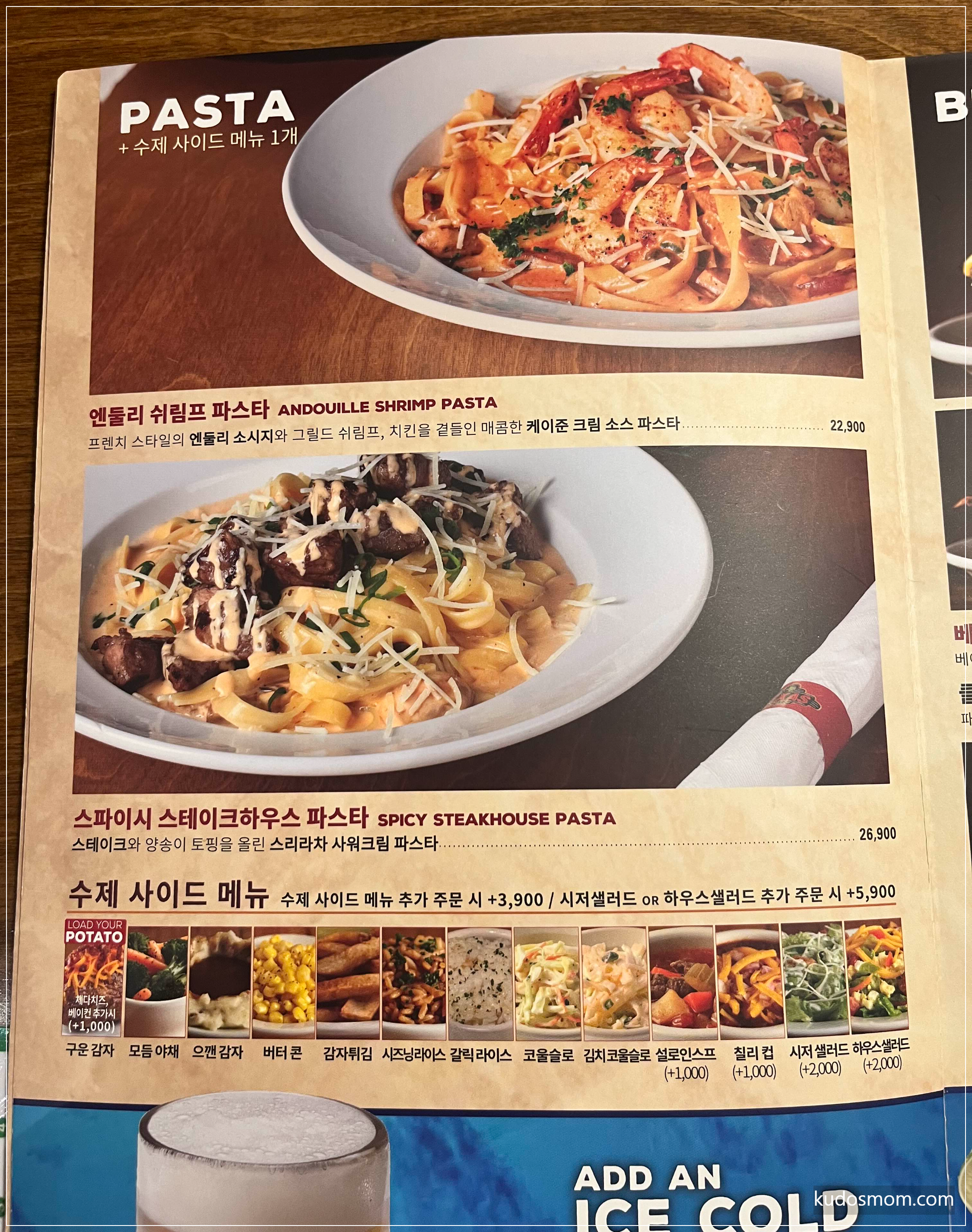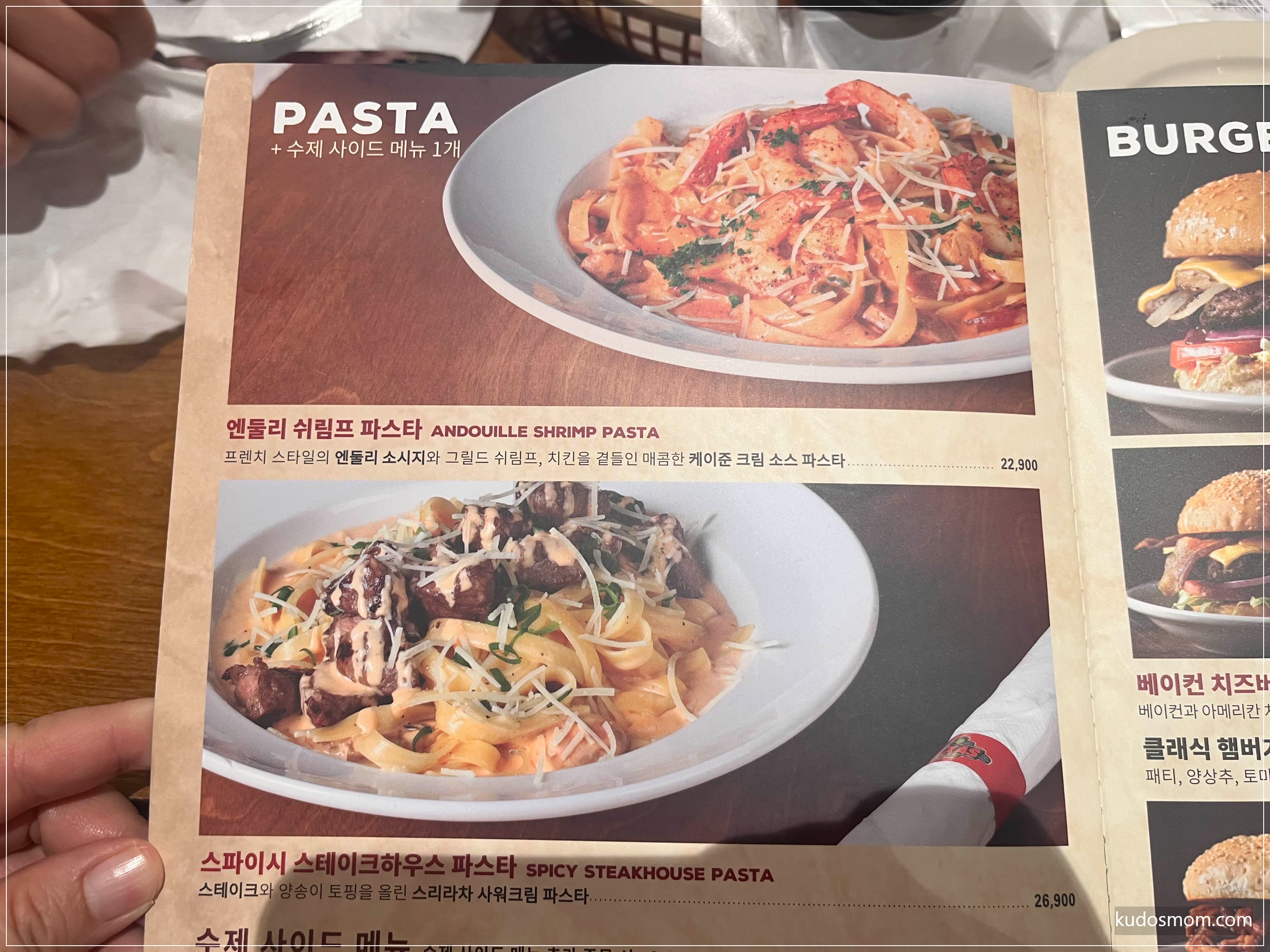 파스타는 쉬림프, 스테이크 2가지 뿐이었는데