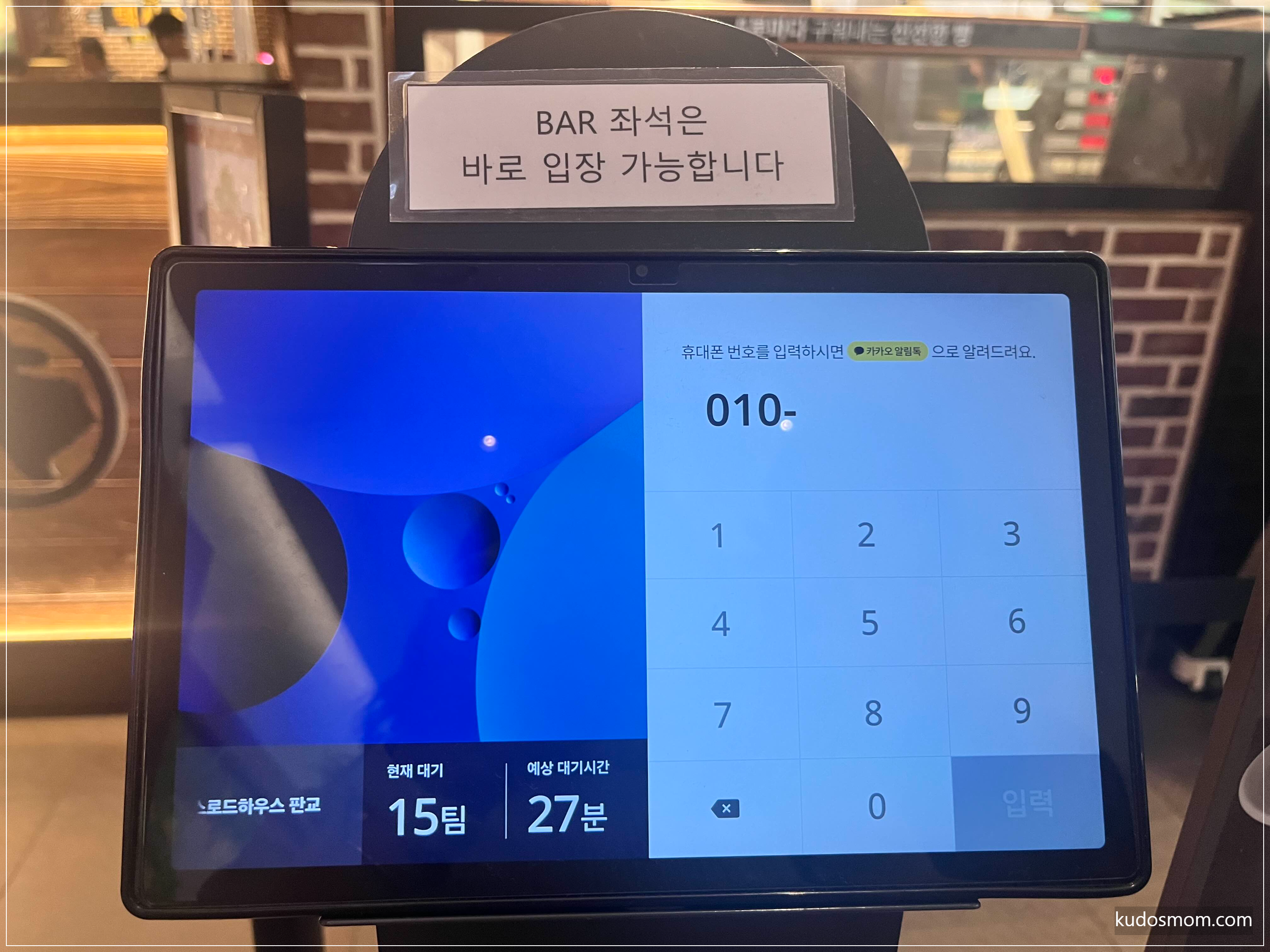 Bar 좌석은 웨이팅 없이 바로 입장 가능하니 참고해주세요.