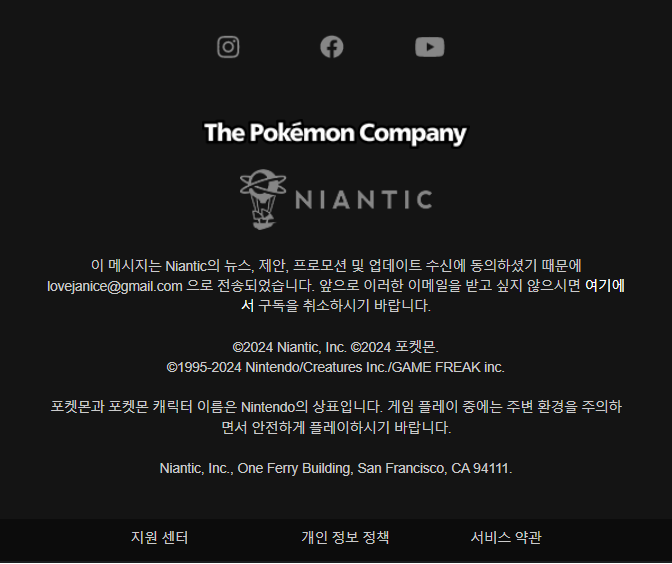 포켓몬고에서 온 이메일 받으셨나요?