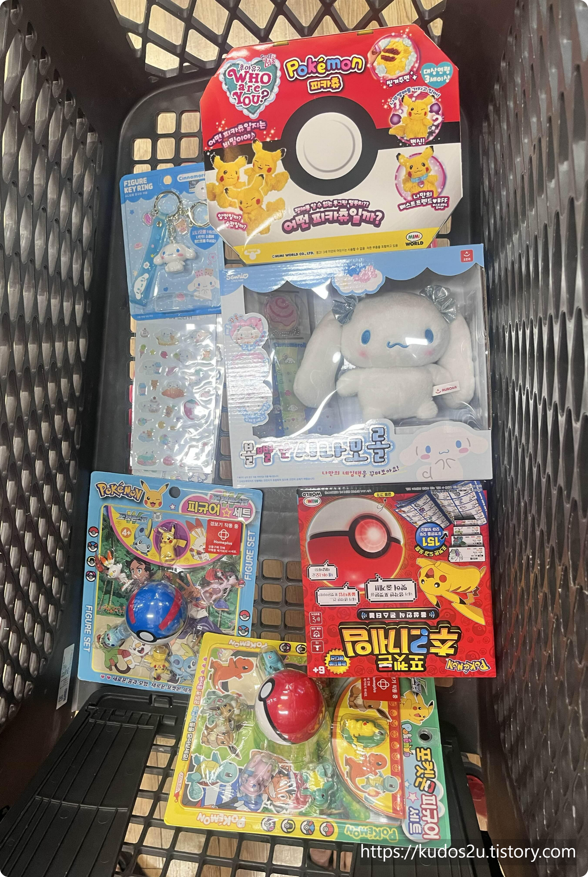 재나 바나나가 좋아하는 피카츄랑 시나모롤 장난감들로 생일 선물 담아봤어요 :)