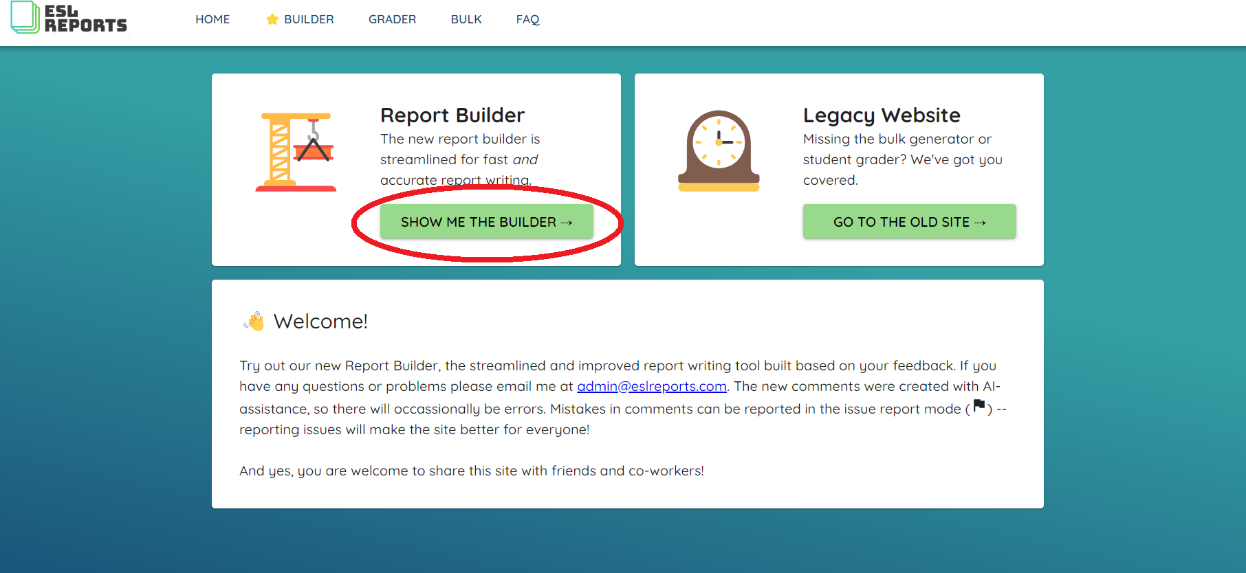 초록색 SHOW ME THE BUILDER 버튼을 클릭합니다.