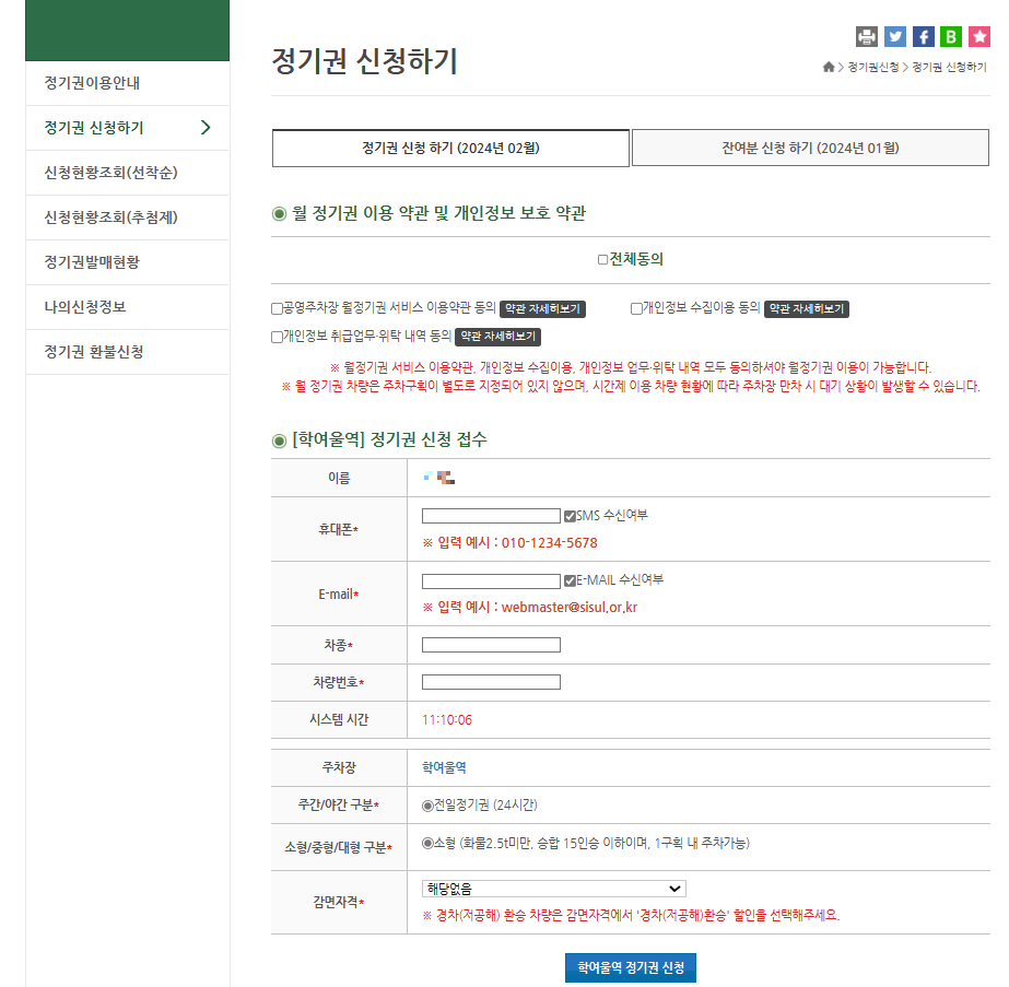 학여울역 공영주차장 정기권 신청 완료 뒤 이용방법은?