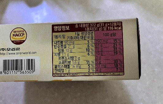 탄수화물, 단백질, 지방, 나트륨 등의 영양소도 표시되어 있었어요.
