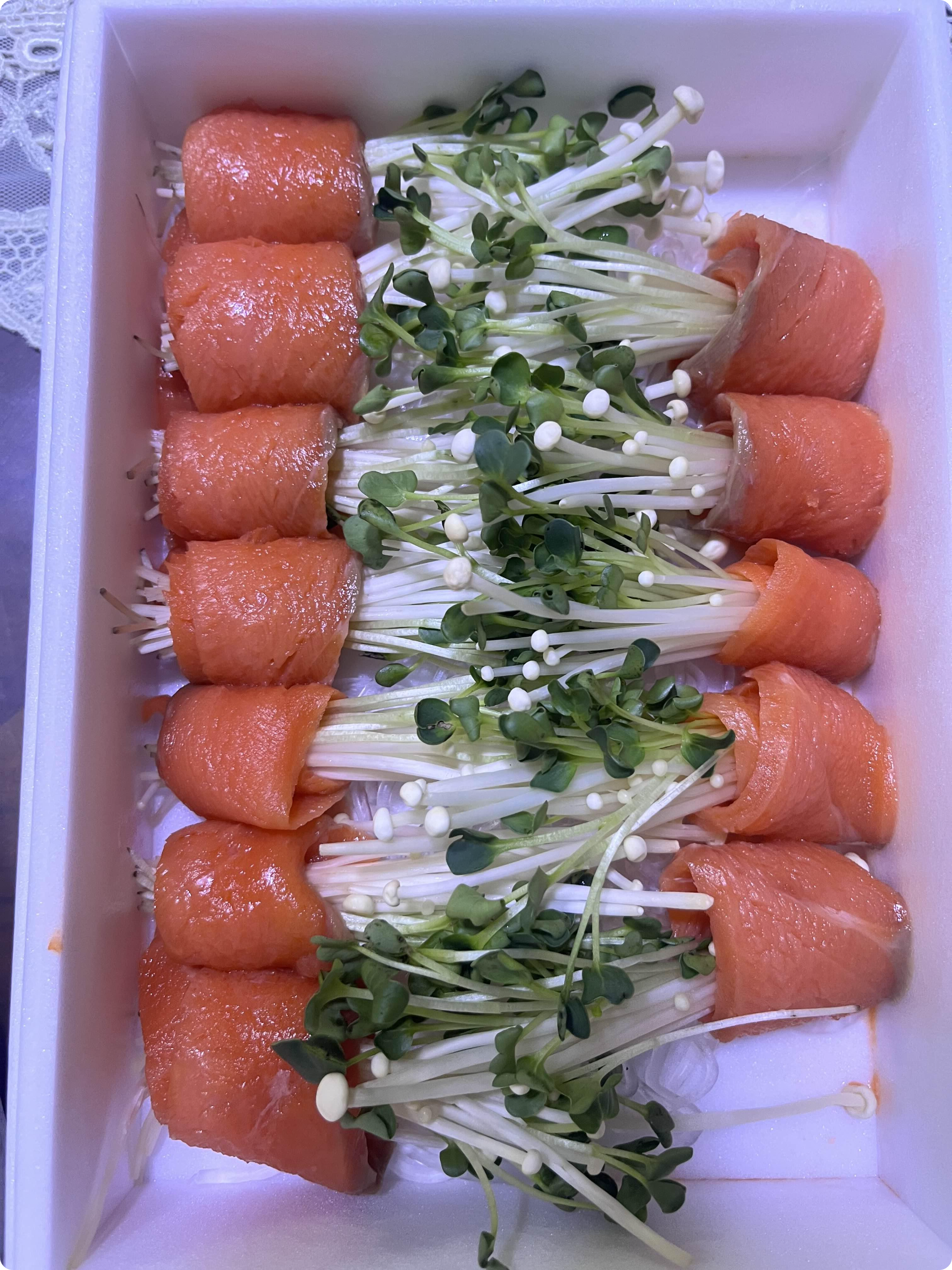 연어말이에는 무순이랑 팽이버섯이 들어갔어요.