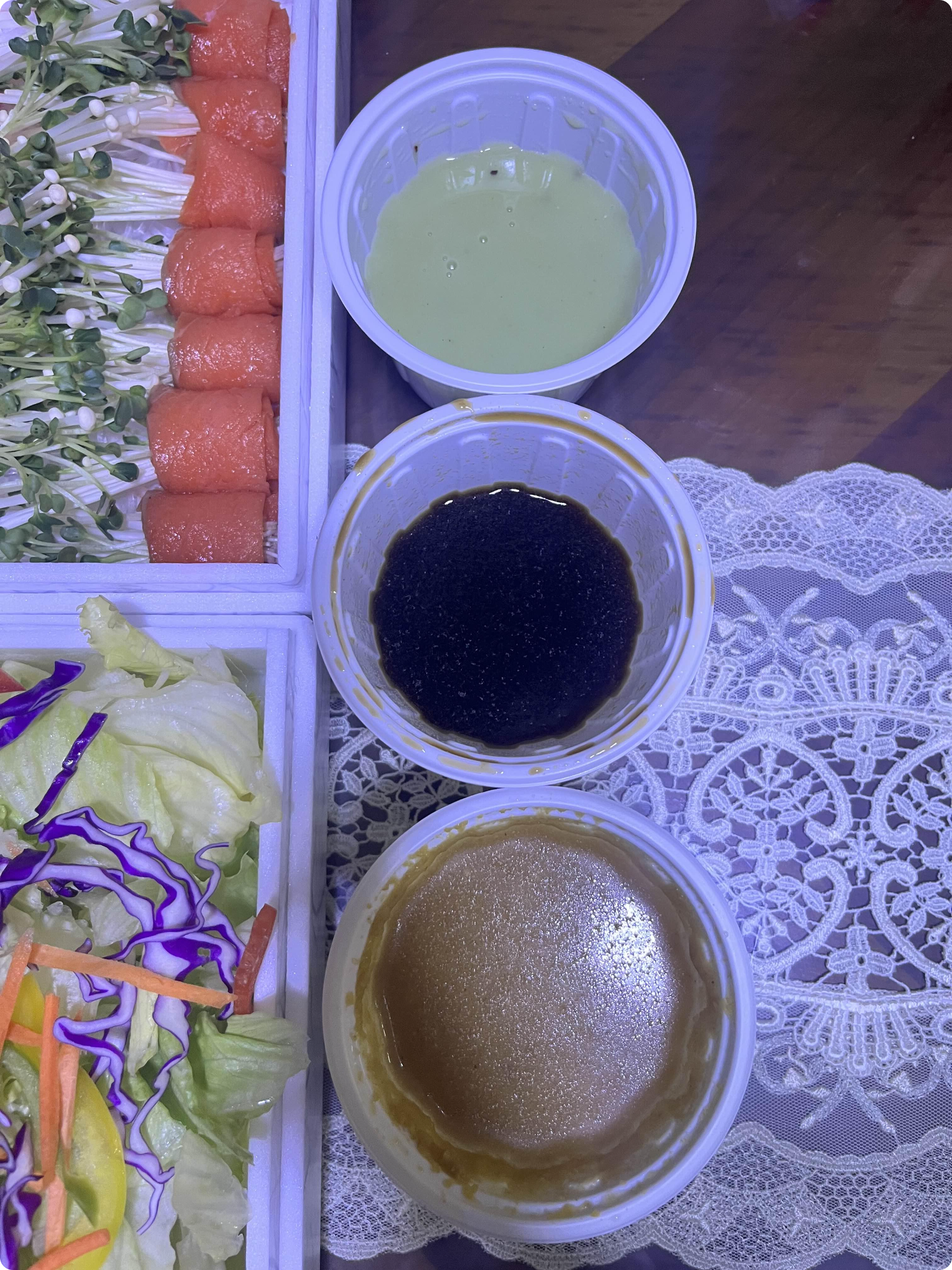 샐러드 드레싱, 초밥 와사비 간장, 그리고 겨자 소스
