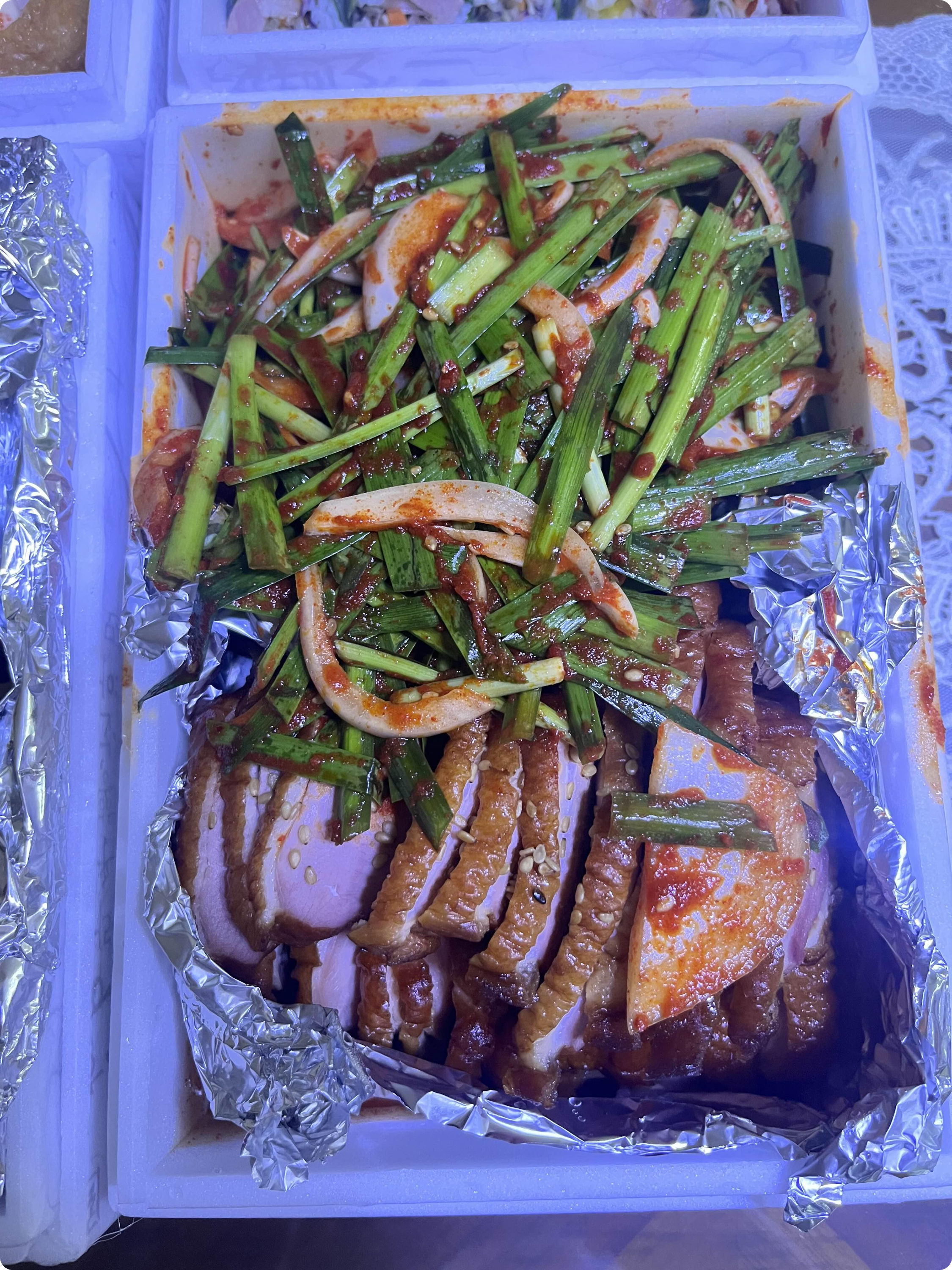 맛있게 버무려진 부추랑 담백한 오리 훈제가