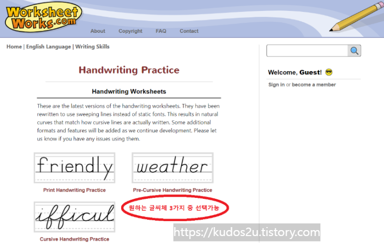 쓰기 연습을 위한 다양한 자료들이 많이 있어서 참고해 보셔도 좋겠어요.