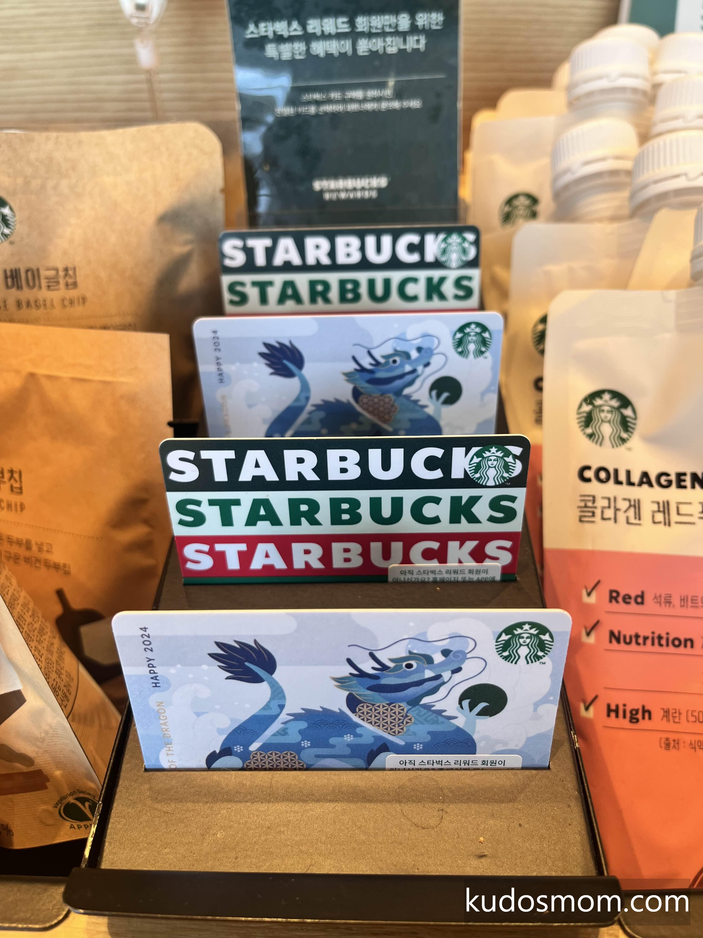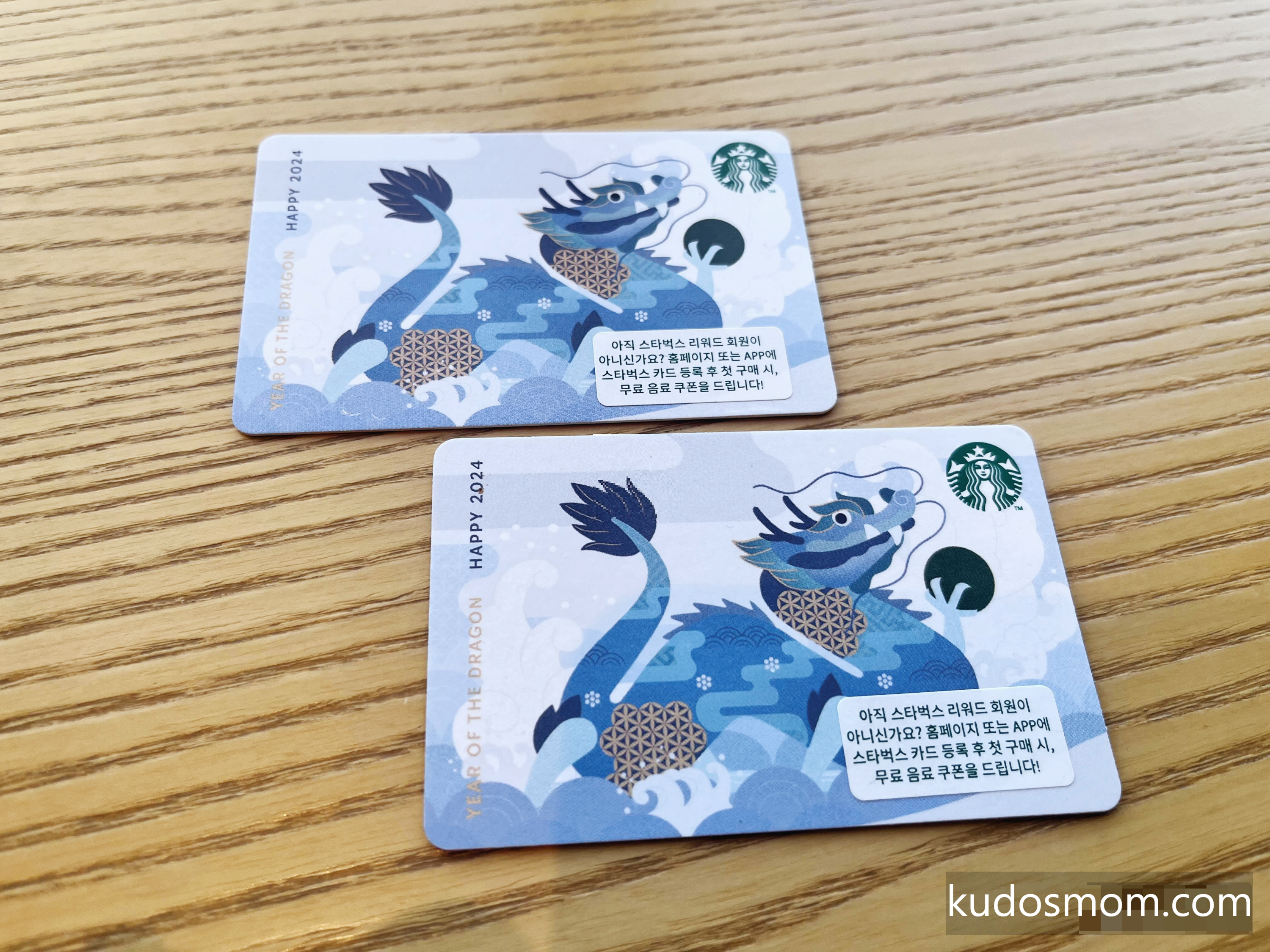 Year of the Dragon, Happy 2024 가 쓰여진 푸른 용 스벅 카드를 2개 구매했어요.