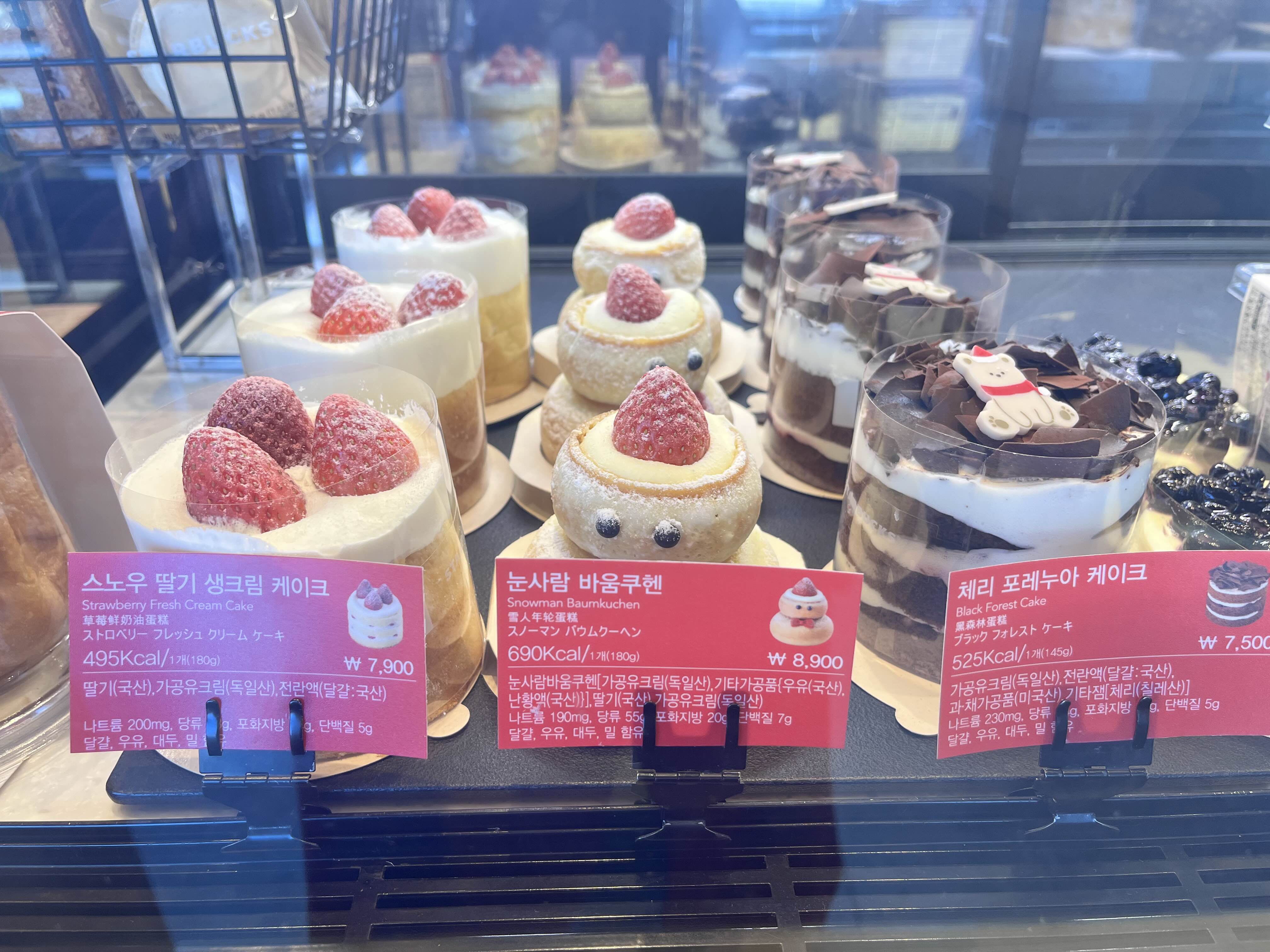 겨울 내내 궁금했던 눈사람 바움쿠헨이랑 체리 포레누아 케이크를 주문했어요 :)