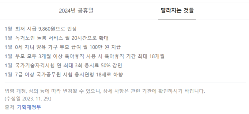 2024년에 달라지는 정책들도 있어요.