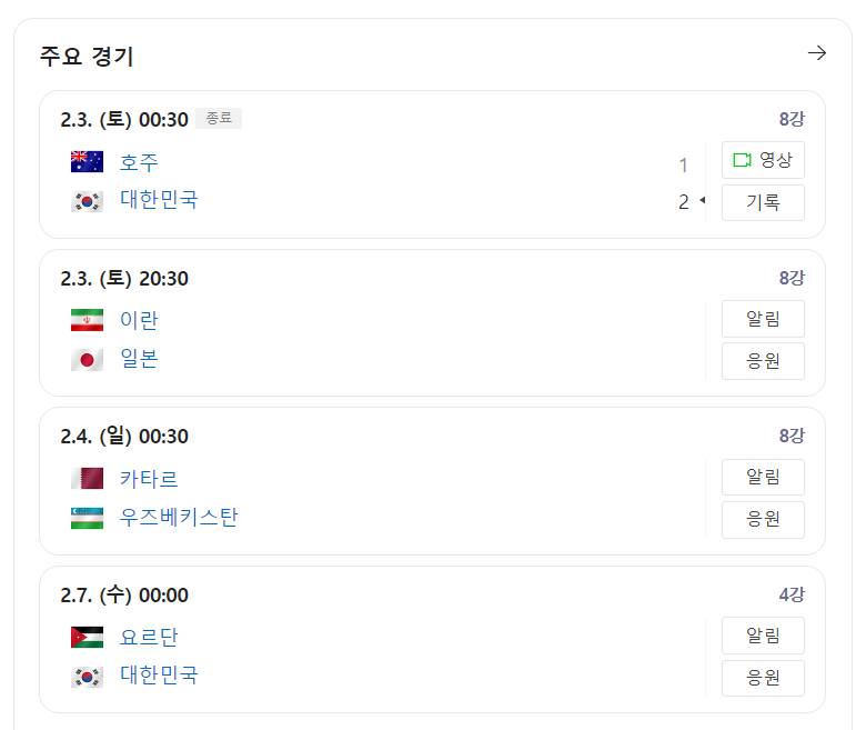 오늘 2월 3일 저녁 8:30부터 시작하는 이란🆚일본 경기는