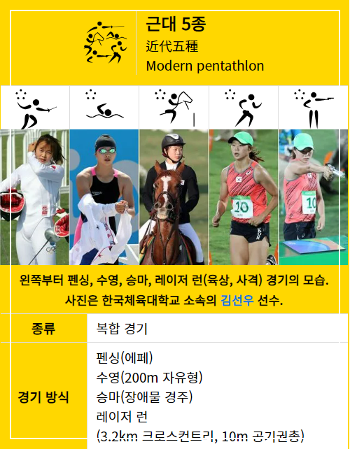 올림픽 종목 이름들이 나온 비주얼 에이드를