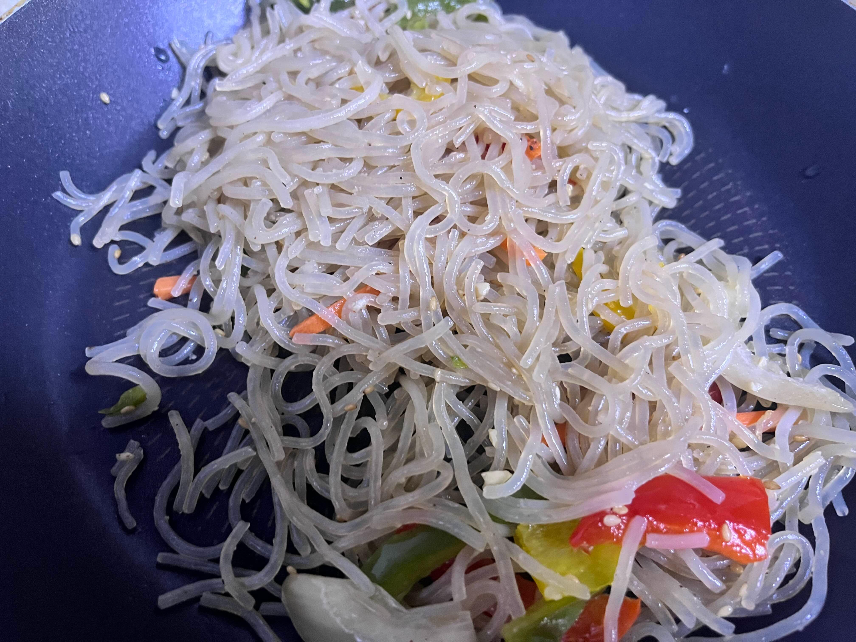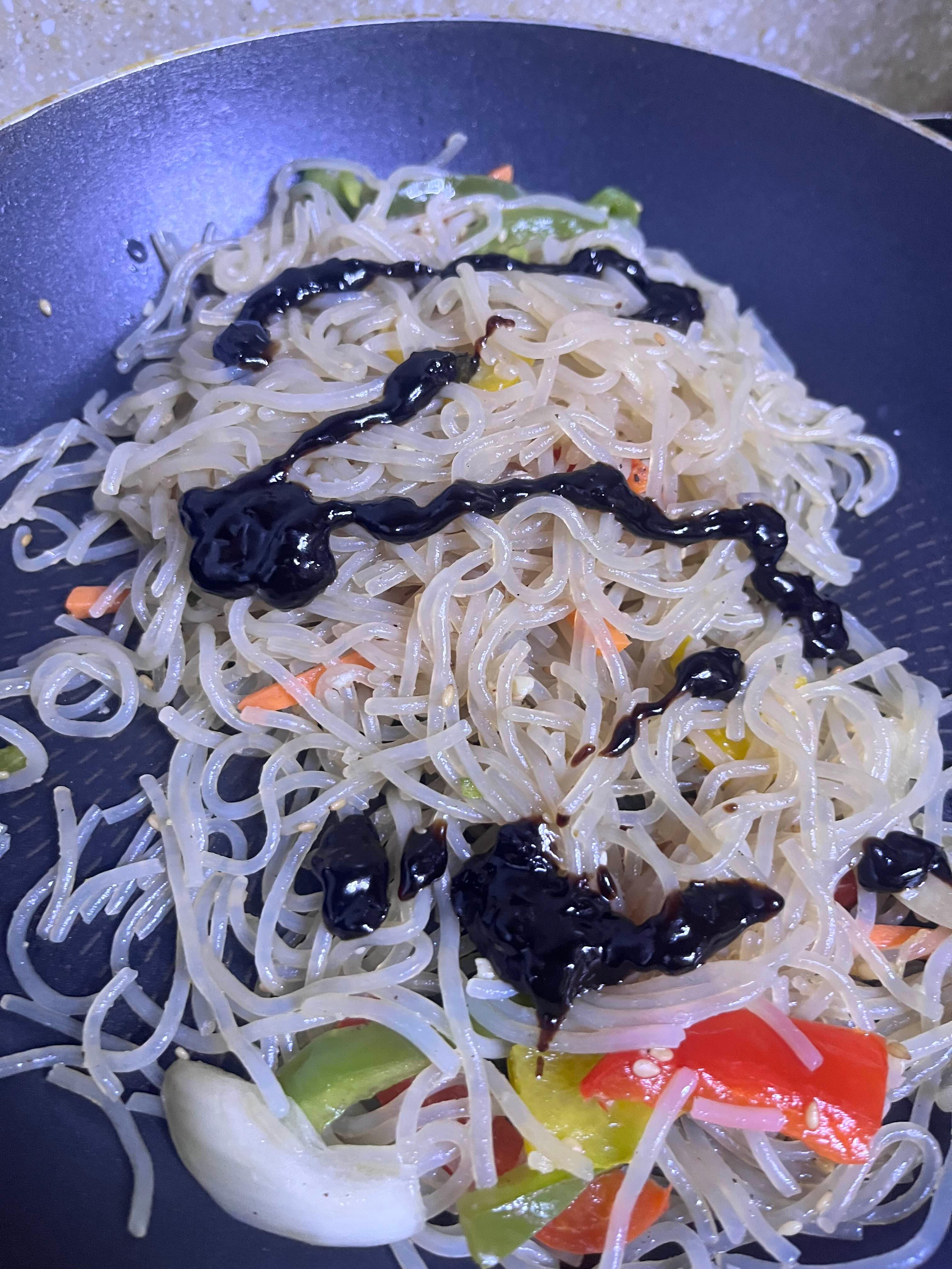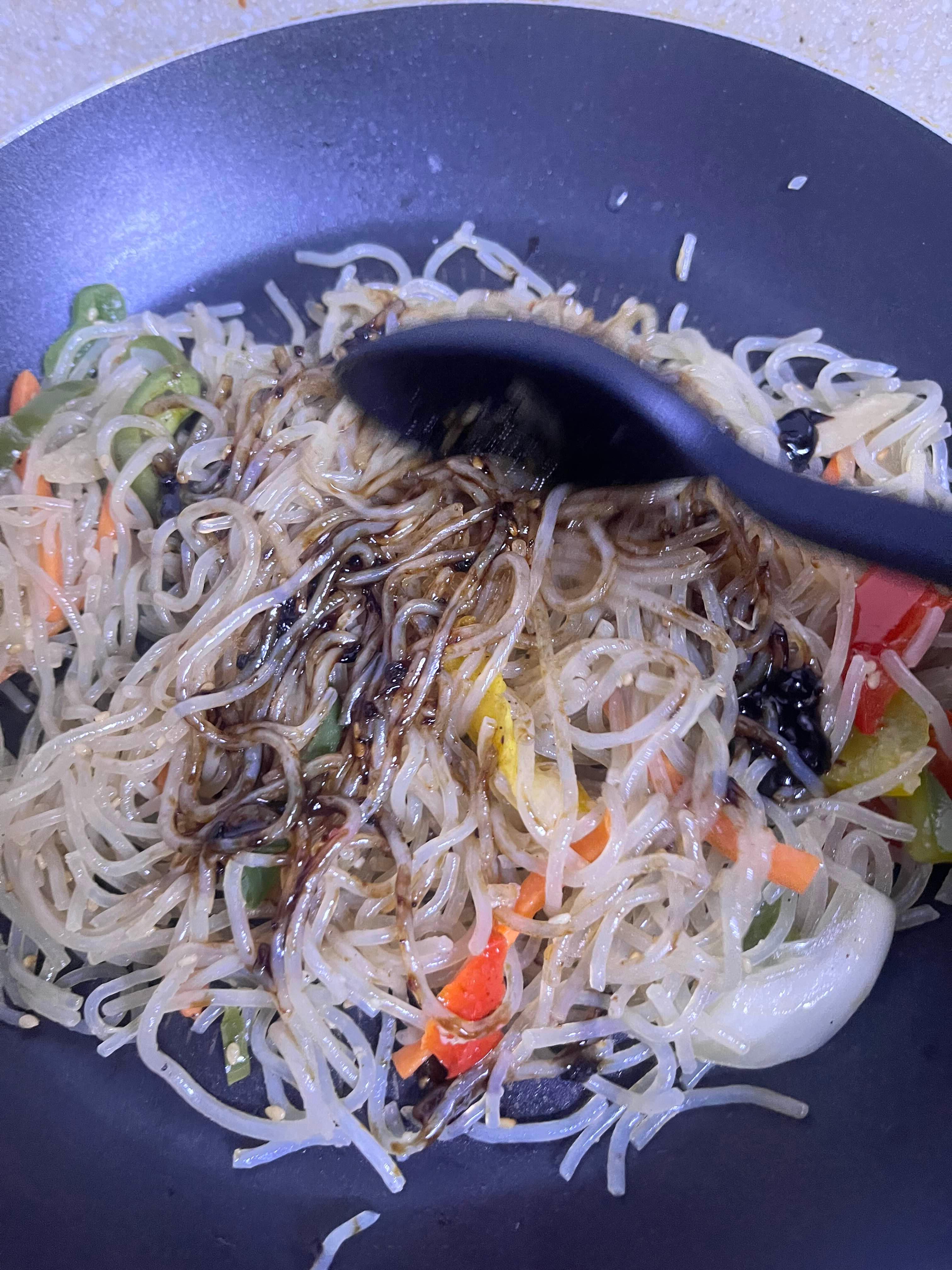 야채 많이 골라먹고 면이 더 많이 남아 처치 곤란이었던 잡채를 한 번 소생시켜보려고