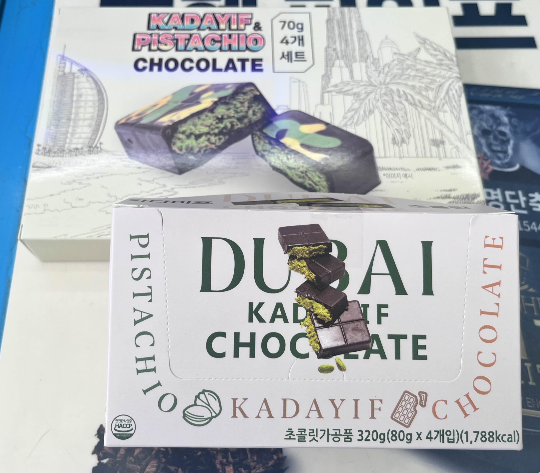 그런데 생긴 건 위쪽 초컬릿이 좀 더 오리지널 두바이 초컬릿에 가까워 보여요.