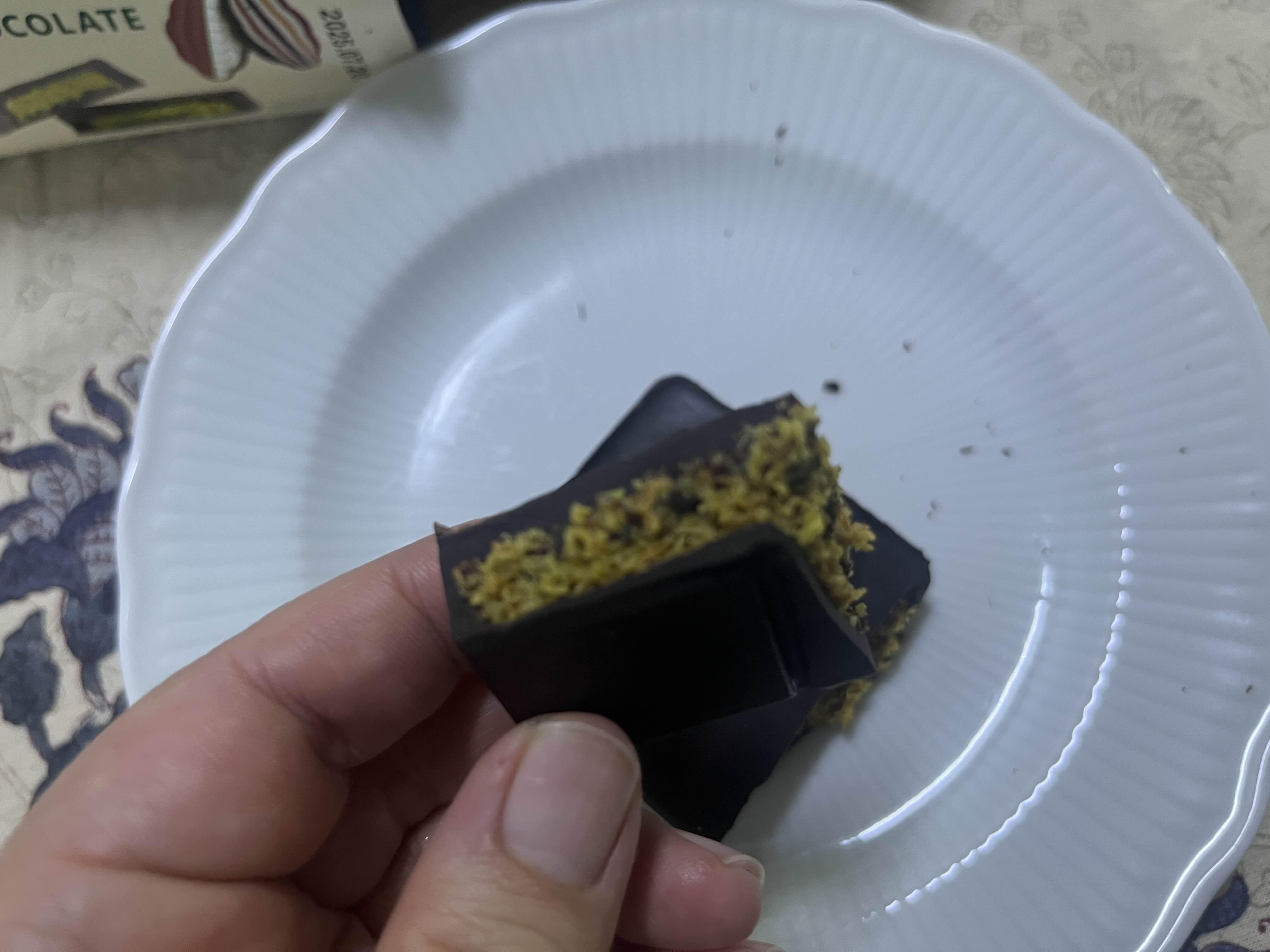 포장지에 피스타치오랑 초컬릿 단면이 그려져 있네요!