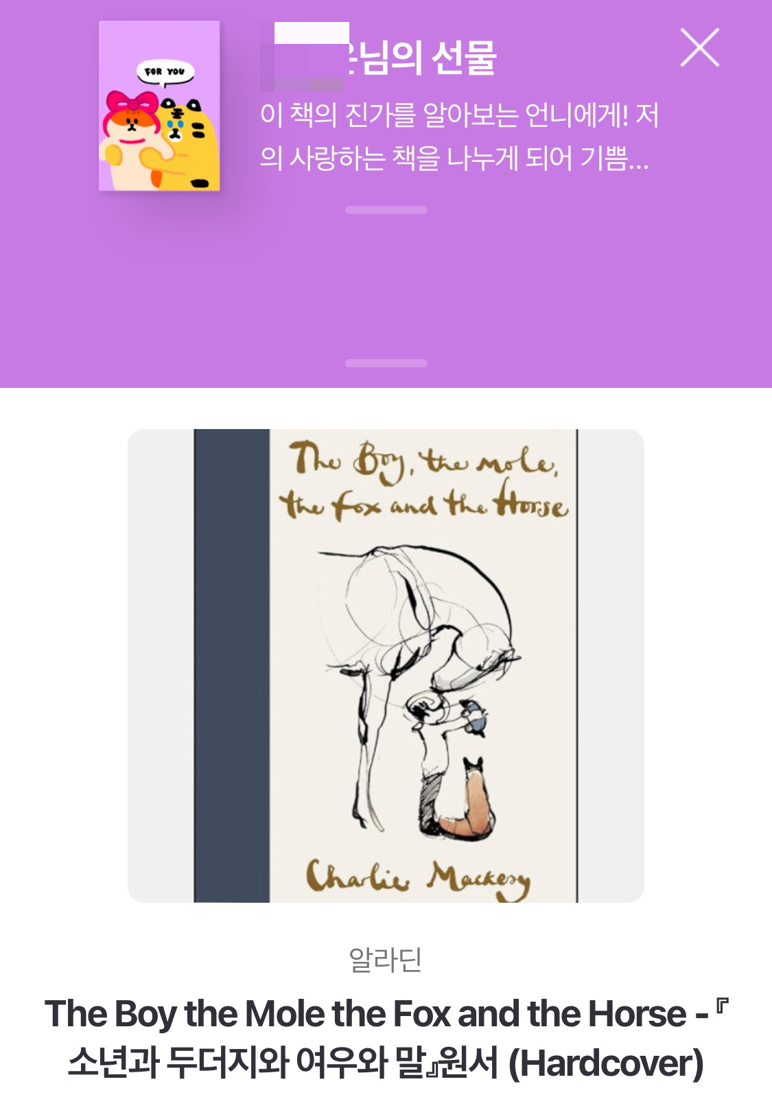 얼마 전에 찰리 맥커시의 <소년과 두더지와 여우와 말>을 읽었어요.