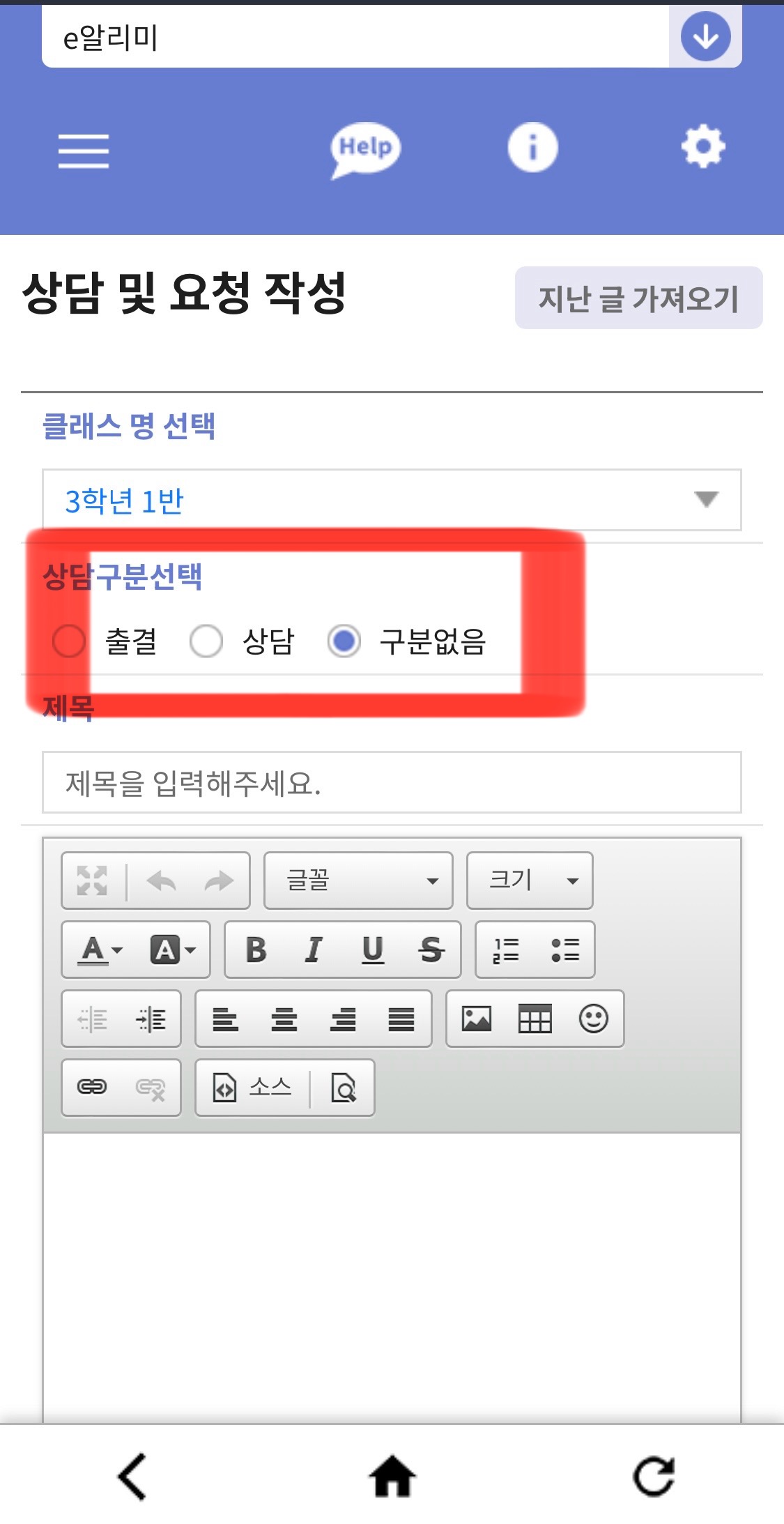 그러면 아래와 같이 총 3가지의 상담구분 선택 옵션이 보일거예요.
